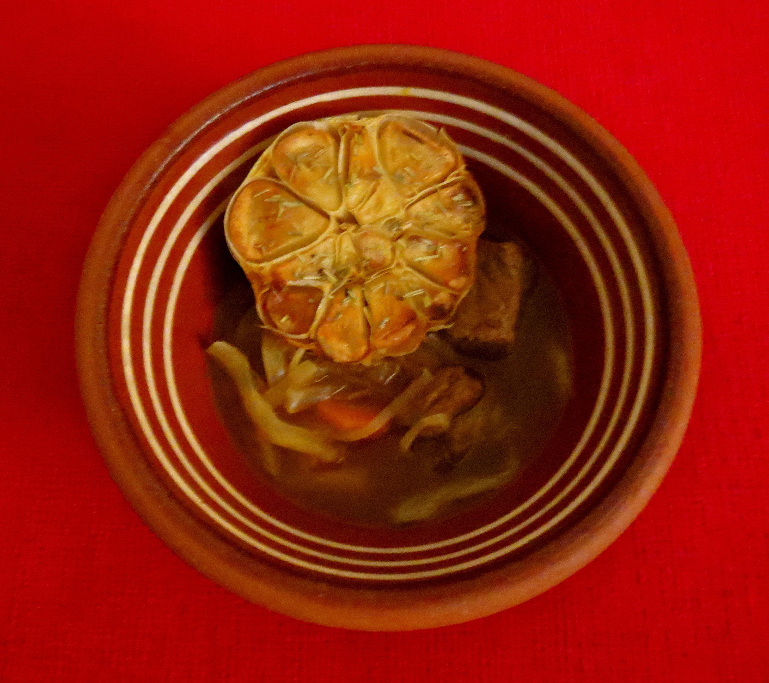 Mainittakoon vielä, että valkosipulisaari antaa kivan lisän lihasopalle, mutta toimii varsin mainiosti myös muiden ruokien lisukkeena.