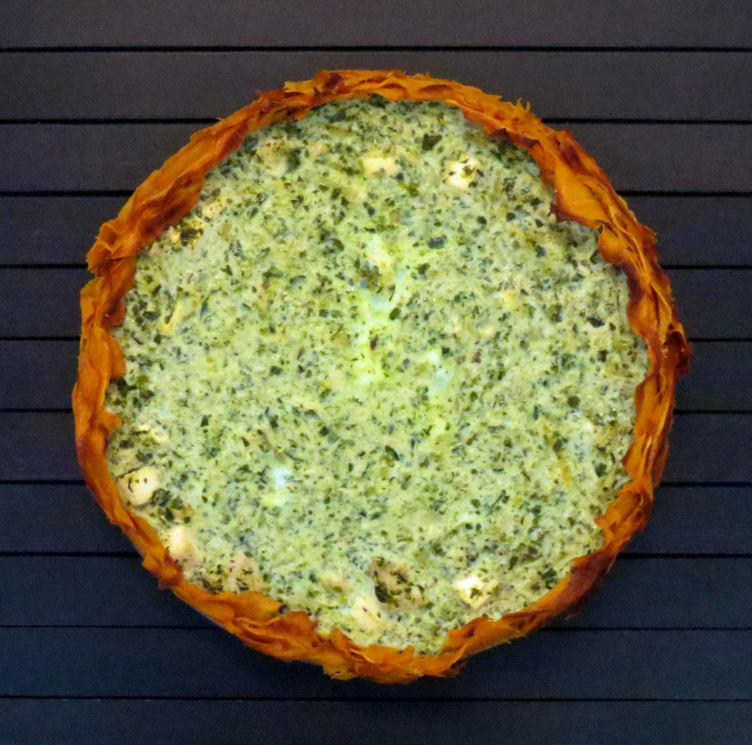Kehotan kokeilemaan ja varioimaan täytteitä reilusti oman mielen ja maun mukaan. Itse ruokaistin Tinskun kasvisversiota lisäämällä täytteeseen broileria ja maustoin runsaalla määrällä Ateenasta tuotua salaattimaustetta. Piirakka on hyvin tehtävissä valmiiksi jo edellisenä päivänä ja juhliin se sopii hienosti, sillä nautinta voi tapahtua yhtä lailla lämpimänä kuin viileänäkin. Kukin myös koristelkoon tavallaan, itse valitsin koristukseksi ainoastaan ensimmäiset pikkuruiset rucolanversoni.