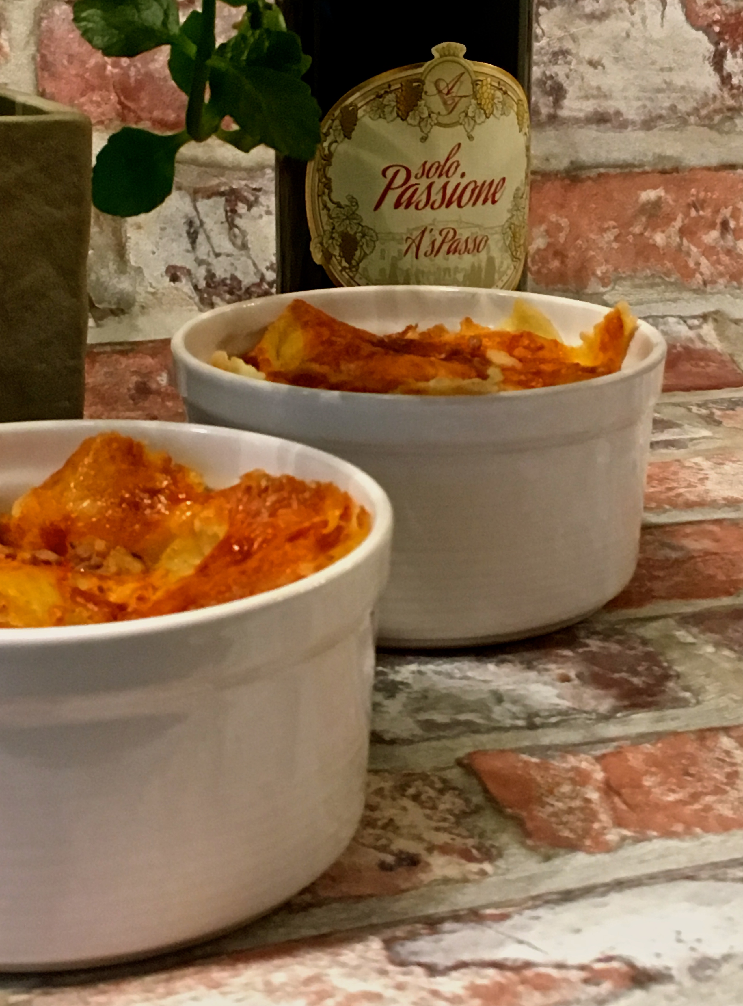 Pitkän ja ironisesti kuvattoman intron jälkeen esittelen teille eilisaamuisen aikaansaannokseni, broilerilasagnen. Lasagne on yksi monista suosikeistani; helppoa valmistaa ja maukasta syödä. Mutta aargh, niin vaikea kuvata. Näinpä en lähtenyt edes yrittämään uunituoreen paistoksen kuvaamista vuoassaan, vaan suunnittelin jo etukäteen sijoittavani sen vain statistiksi johonkin kuvan nurkkaan. Uudet valkoiset kirppiskulhot kuitenkin pelastivat tilanteen ja sain jopa annoksista itsestään ihan onnistuneen otoksen. Täytyykin kokeilla joskus tuollaisia annoskokoisia lasagneja.