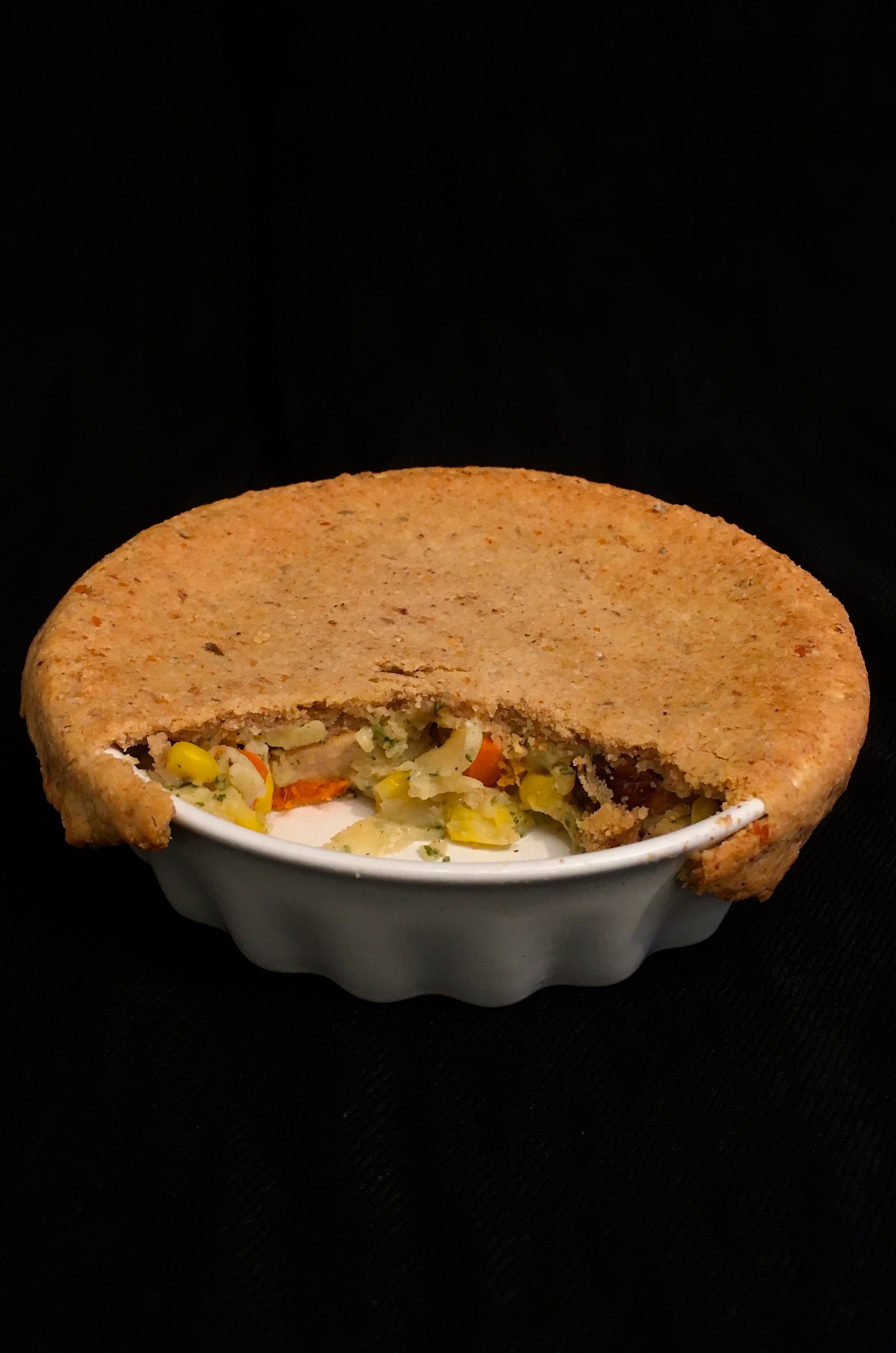 Pot Pie -ideasta vielä sen verran, että sisällön piilottaminen kuoren sisään todella kannattaa. Tein nimittäin kaksi erilaista versiota, joista toinen oli pohjan päälle rakennettu. Tavallinen versio oli paljon kuivempaa.