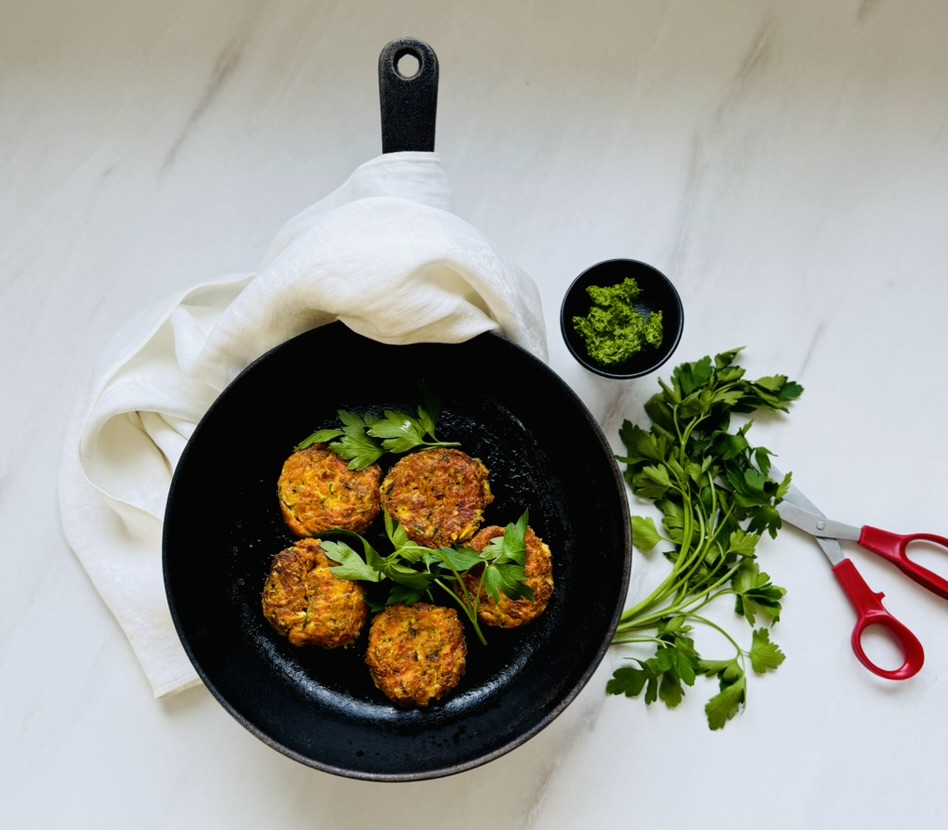 Pese ja kuori porkkanat ja huuhtele kesäkurpitsa. Raasta porkkana ja kesäkurpitsa karkeaksi raasteeksi. Voit painella sitä siivilän läpi ylimääräisen nesteen poistamiseksi.