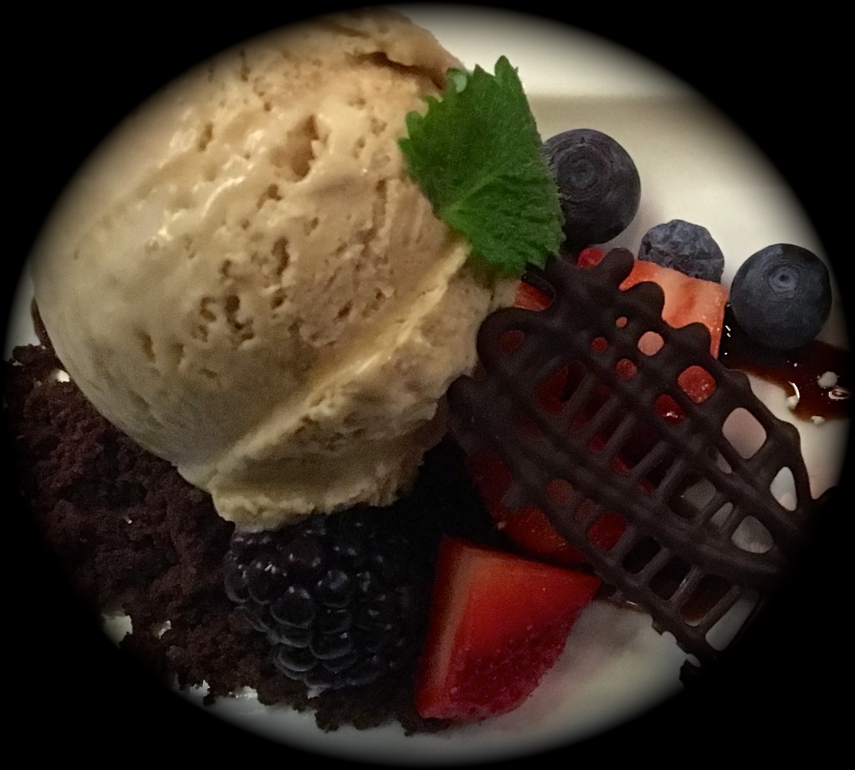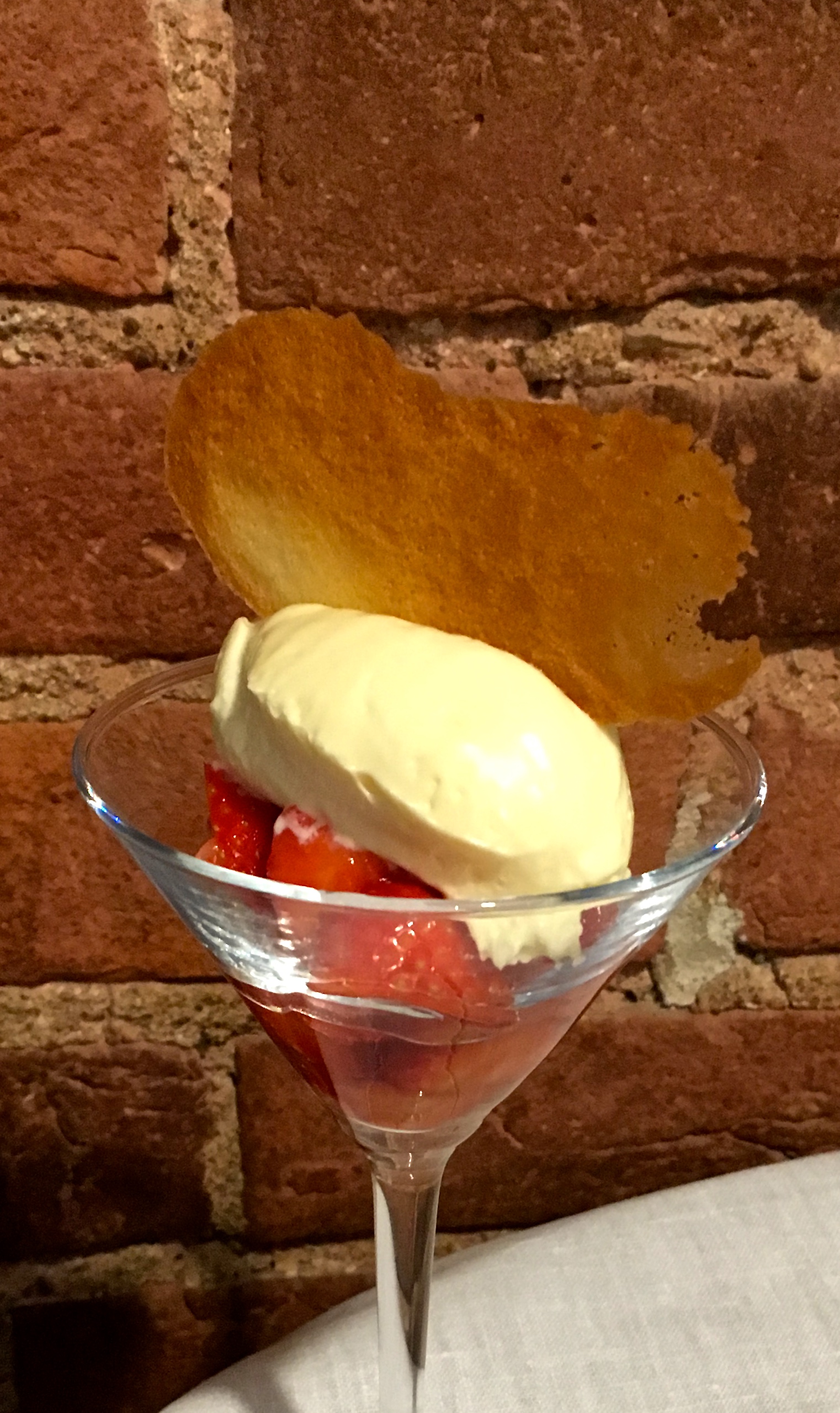 Jälkiruoka, Vileen mansikkacocktail, on nimensä mukainen. Proseccossa marinoituja mansikoita cocktaillasissa, pinnalla valkosuklaamoussea ja ohut kaurakeksi. Ihan hyvää, ei kuitenkaan sen kummempaa.