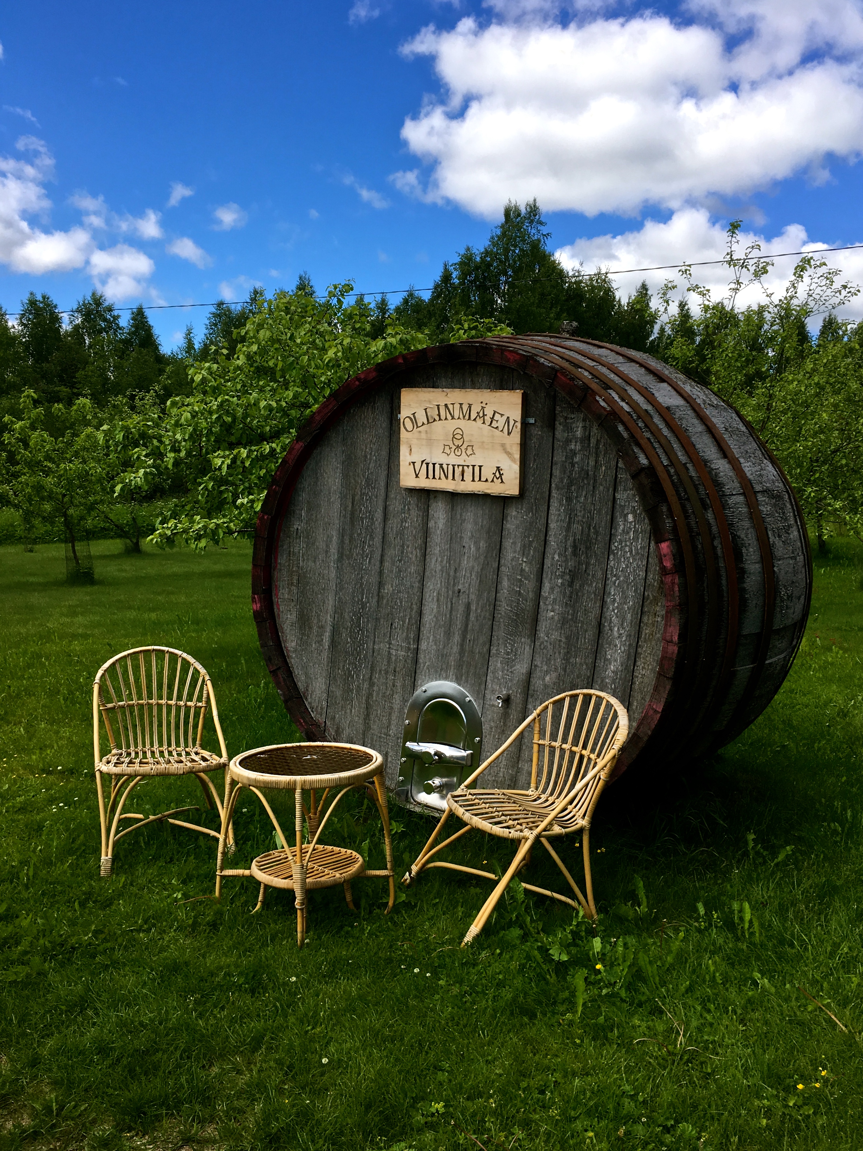 Ollinmäen viinitilalla maistelimme marja- ja hedelmäviinejä, jotka maistuivat… hmm… suomalaisilta viineiltä. Eli mitään viininmaistelijan huippuhetkiä emme kokeneet, mutta suhtauduimmekin tilanteeseen enemmän mielenkiinnolla. Kuusi neljän sentin maisteluannosta kympillä, hauska homma. Kotieväiksi ostimme vielä setin tilan neljää erilaista siideriä ynnä kahta kuohuviiniä – muut viinit jäivät näin ollen maisteluasteelle.