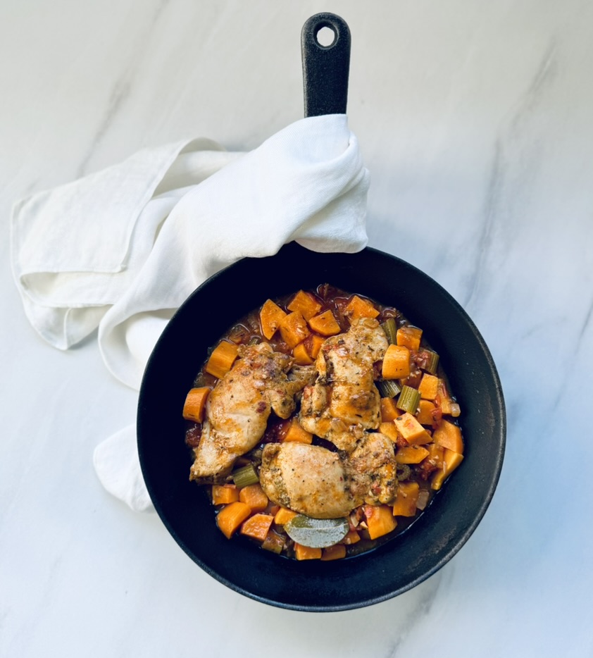 Niin tai näin, ideat helpoista ja maukkaista arkiruoista ovat varmasti tervetulleita tähän aikaan vuodesta. Seuraava yksinkertainen kanakastike on ruoka, johon päädyn silloin, kun kaapeista ei löydy sen ihmeempiä ainesosia ja ateria on saatava tarjolle nopeasti. Hyviä seuralaisia kastikkeelle ovat pasta, peruna tai ohrahelmet, miksei riisikin (jota itse olen nykyään pyrkinyt sen suuren ilmastokuorman vuoksi välttelemään).