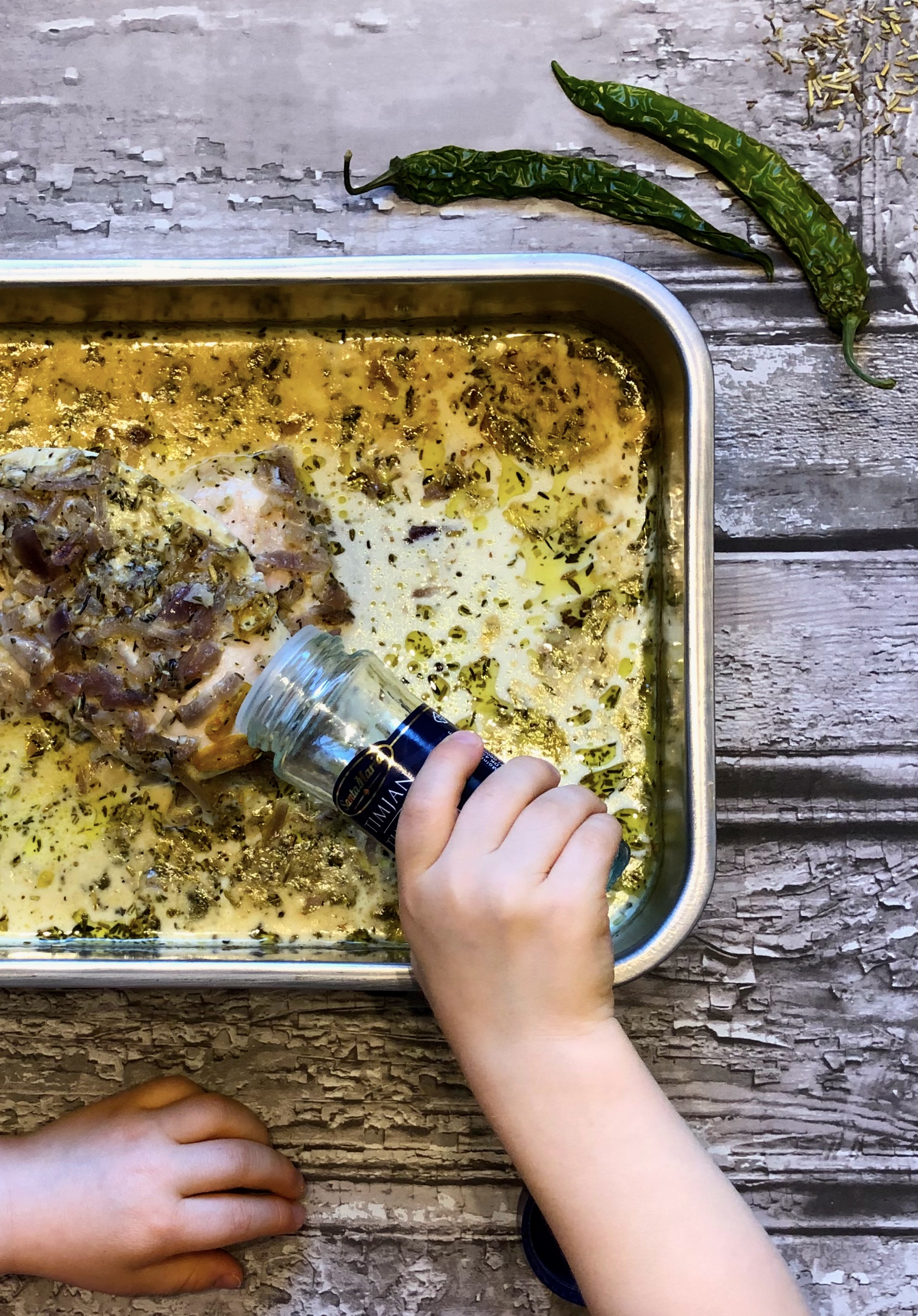 Meitä on siunattu tyytyväisillä, itseohjautuvilla ja innokkailla lapsilla. Joskus koen jopa huonoa omaatuntoa siitä, kuinka mainiosti jälkikasvumme viihtyy omissa oloissaan. Pikku-Kokin keskittyminen häntä kiinnostaviin asioihin on täysin omaa luokkaansa, Neiti-Kokki tutkii itsenäisesti maailmaa lattiatasosta jo nyt todella pitkiä aikoja. En tiedä, mikä tähän on syynä, itse olen ollut täysin toisenlainen lapsi. Toisaalta, mikäli lapset ovat päässeet pitkästymään, olen hetimiten napannut heidät osaksi omia puuhiani, ensin kantoliinassa katselemaan, sitten pikkuhiljaa hieman aktiivisemmiksi osallistujiksi. Ja nyt, hiukan alle kolmevuotiaana, Pikku-Kokkia voi pitää jo innokkaana ja alati uutta oppivana keittiöapulaisena, joka tuntee maut, eikä koskaan kieltäydy maistamasta uusia. Olen otettu.