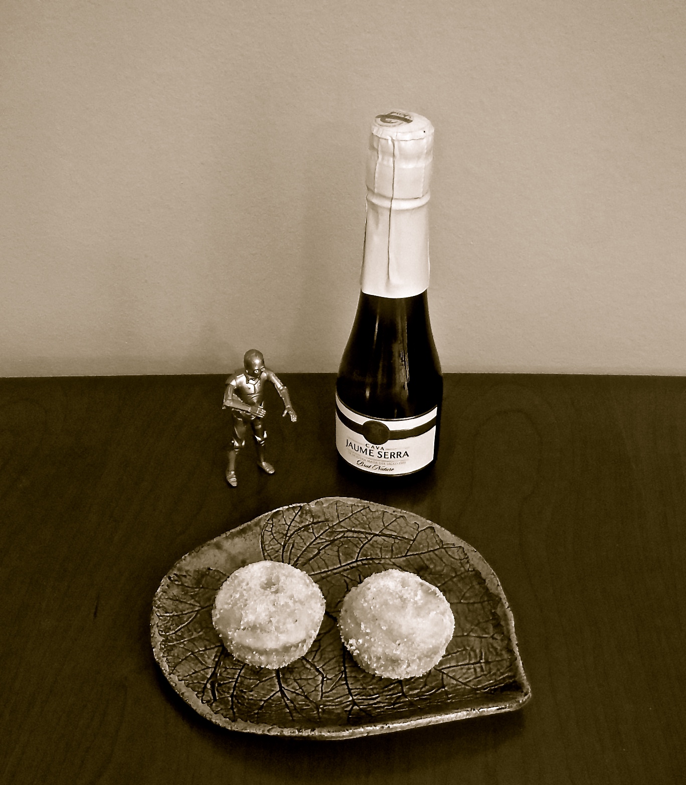 Jälkiruoaksi sitten uunissa paistettuja donitsejaSuklaapossun tyyliin munkkien korvaajaksi ja vappuateria alkoi olla siinä. Kyytipojaksi simaa ja kuohuvaa sulassa sovussa.