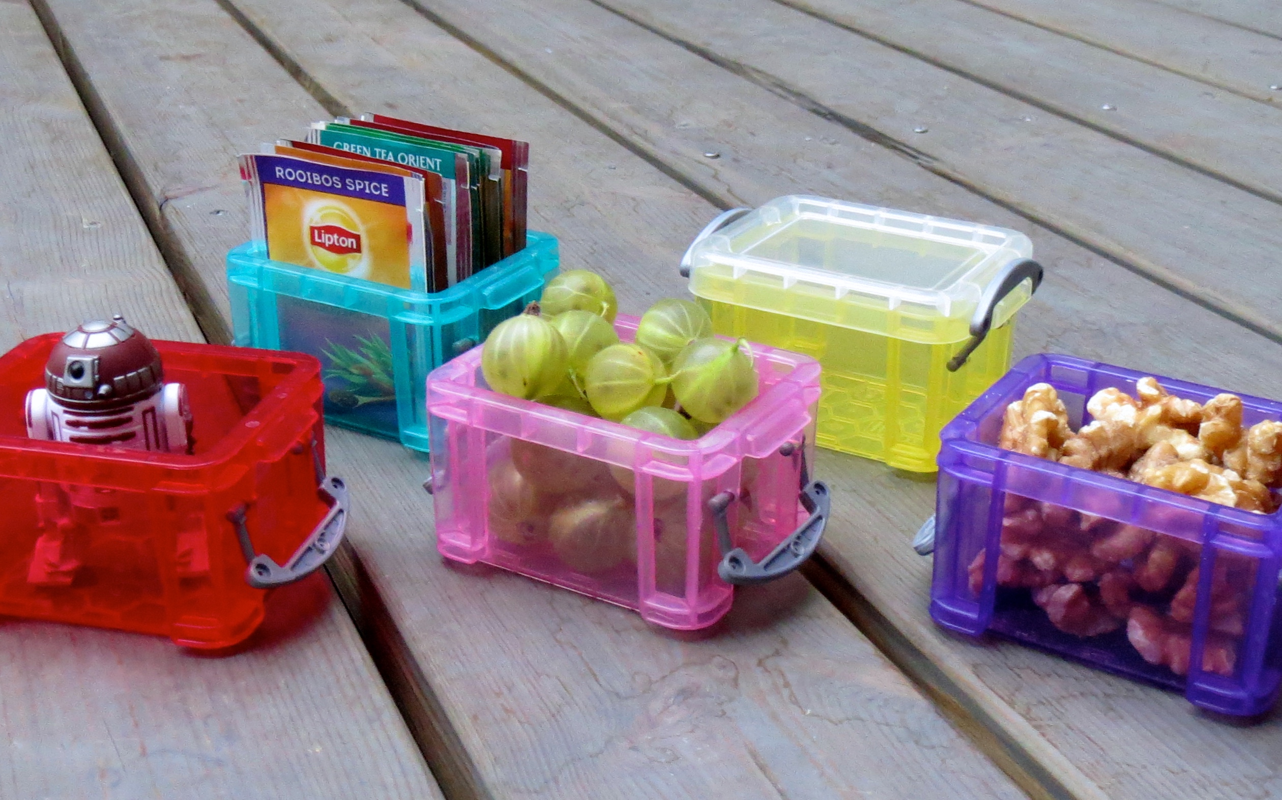 Olen jo pitkään ihastellut näitä söpöläisiä, mutta nimestään huolimatta, en ole keksinyt niille niin sopivaa käyttötapaa, että olisin tuonut niitä kotiin asti. Kun sitten kuulin, että niissä voi säilyttää myös elintarvikkeita, en enää tyytynyt pelkkään katseluun, vaan kotiutin yhden paketin. Tässä siis pieni mainos: näitä minilaatikoita sangen erilaisine ja -kokoisine sisaruksineen myydään ainakin Suomalaisessa Kirjakaupassa… Laajemmin valikoimaa voit tarkastella täällä.