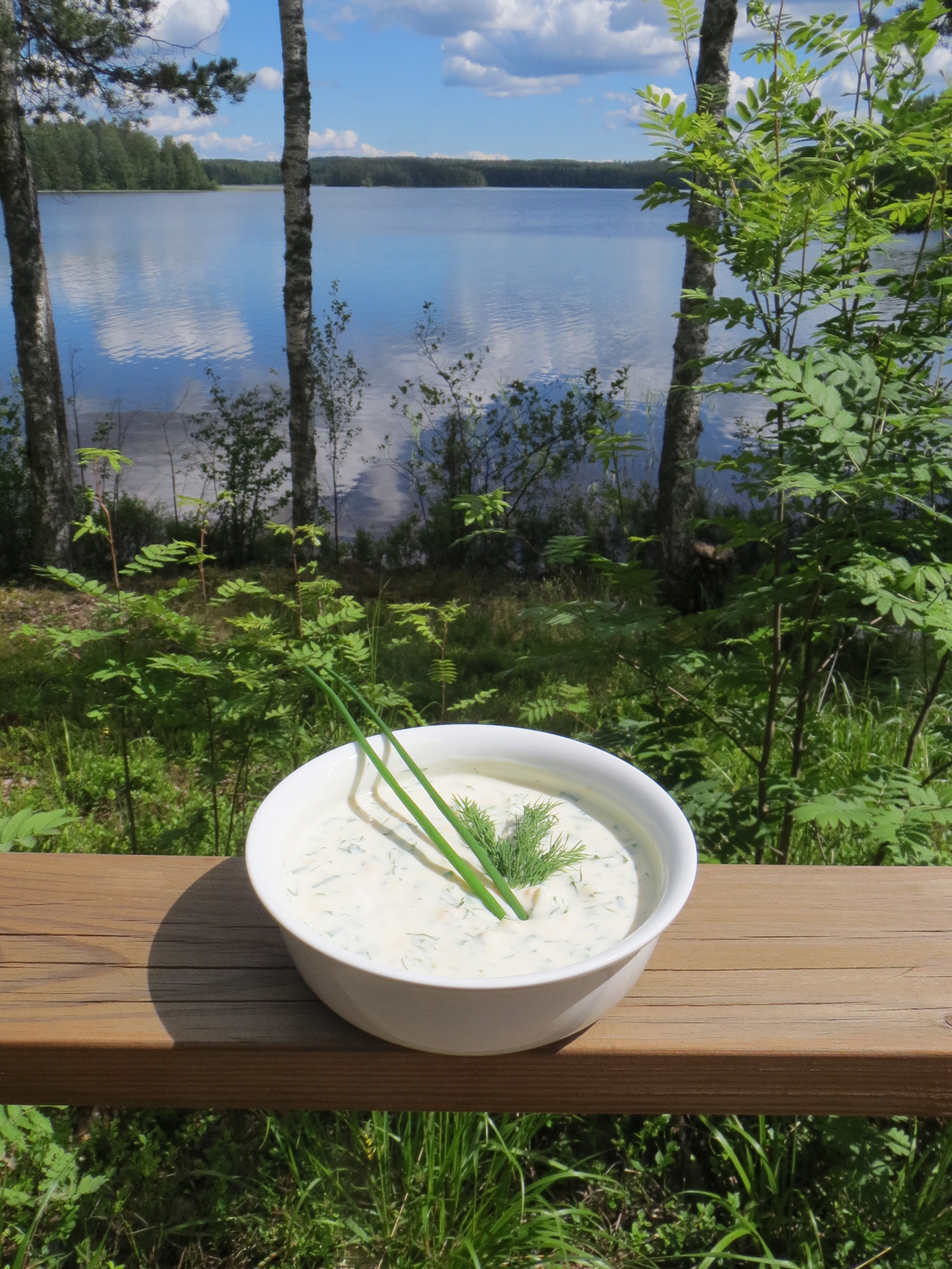 Tänä vuonna vietimme juhannusta pitkälti jo viime vuodesta tutun kaavan mukaan; Kuolimojärven rannalla, grilliruoan parissa. Erotuksena edelliseen tosin se, että kaunista järvimaisemaa katselimme lähinnä ikkunalasien läpi ja konsertoinnista vastasi radio. Terassiruokailu kuikanlauluineen osoittautui näillä lämpötiloilla mahdottomaksi tehtäväksi.