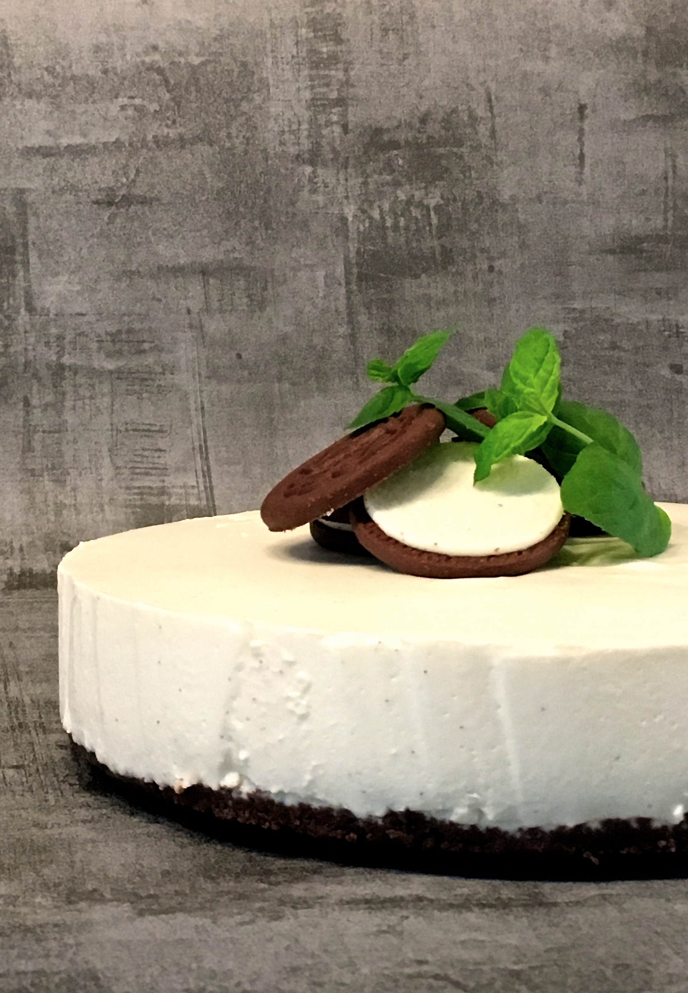 Murskaa keksit pieneksi muruksi ja sekoita sula voi joukkoon. Pingota irtopohjavuoan pohjalle leivinpaperi ja painele keksimurska vuoan pohjalle. Voit myös sipaista vuoan reunoille hiukan rypsiöljyä, jotta kakku irtoaa siitä kauniimmin. Nosta vuoka jääkaappiin täytteen valmistamisen ajaksi.