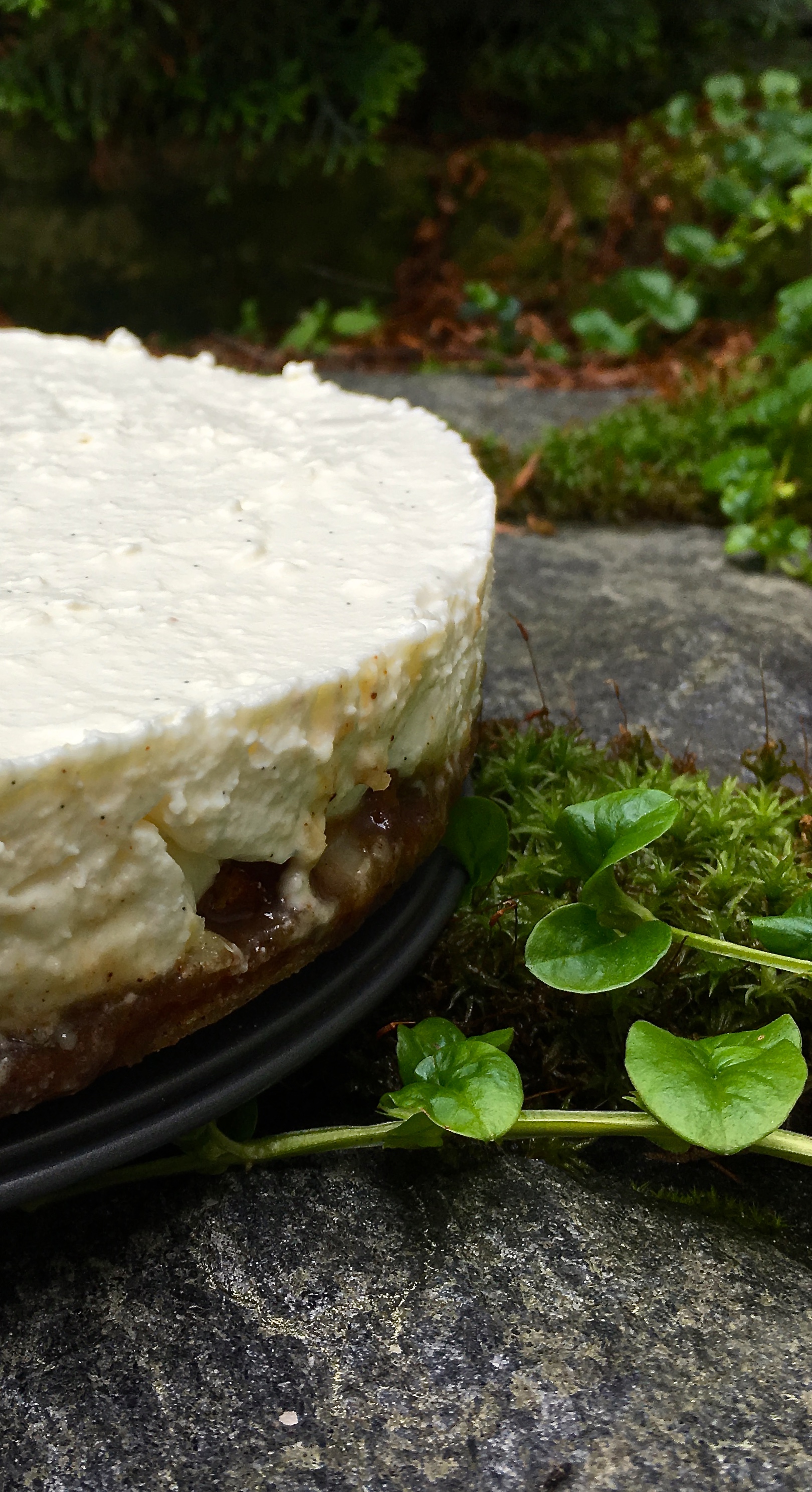 Kaada täyte vuokaan keksimurskan päälle ja tasoita pinta lusikalla tai nuolijalla tasaiseksi. Laita jääkaappiin hyytymään vähintään neljäksi tunniksi tai yön yli.