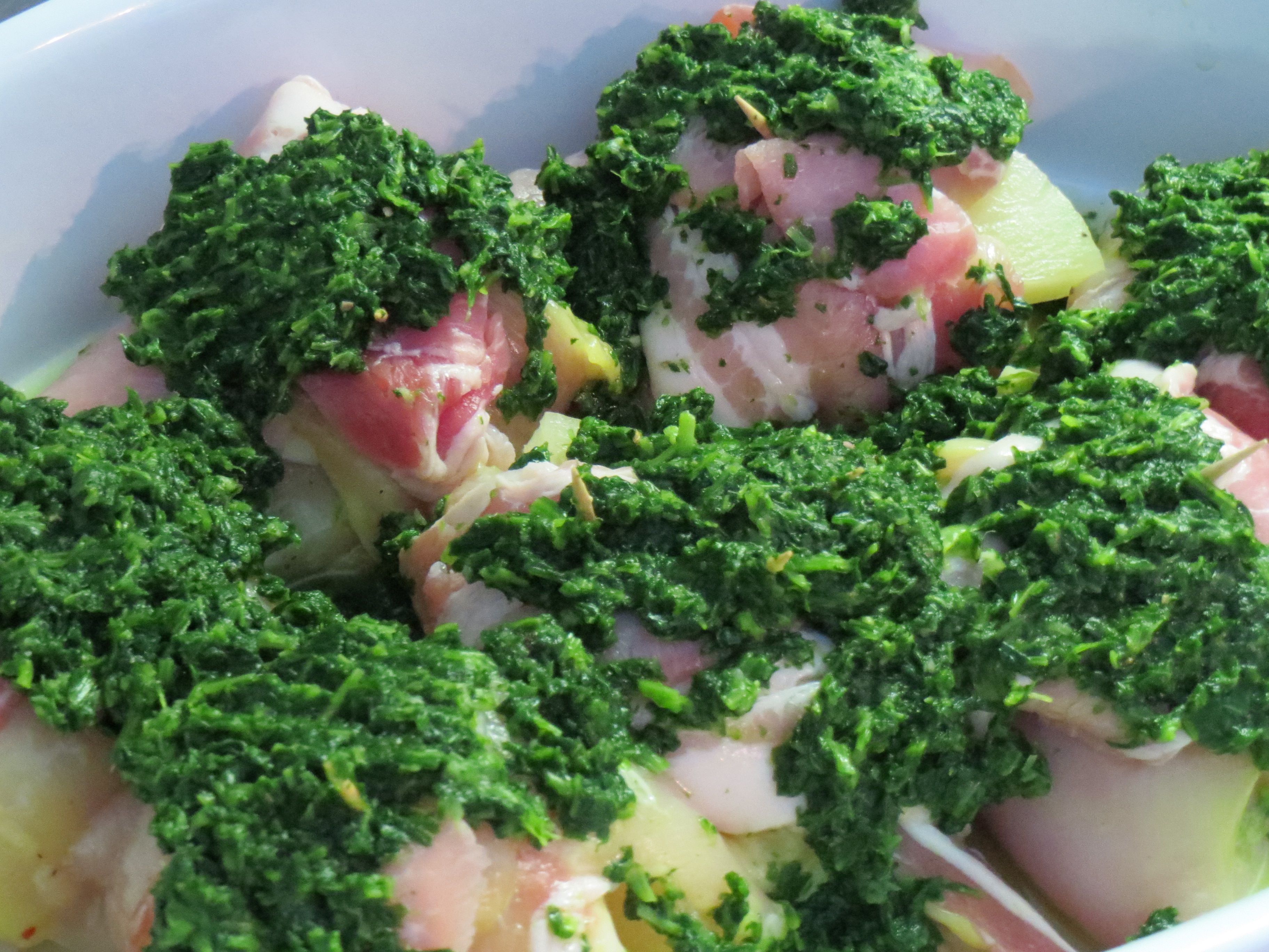 Sekoita mausteet sulatettuun pinaattiin. Kuorruta broilerinyytit pinaattiseoksella.