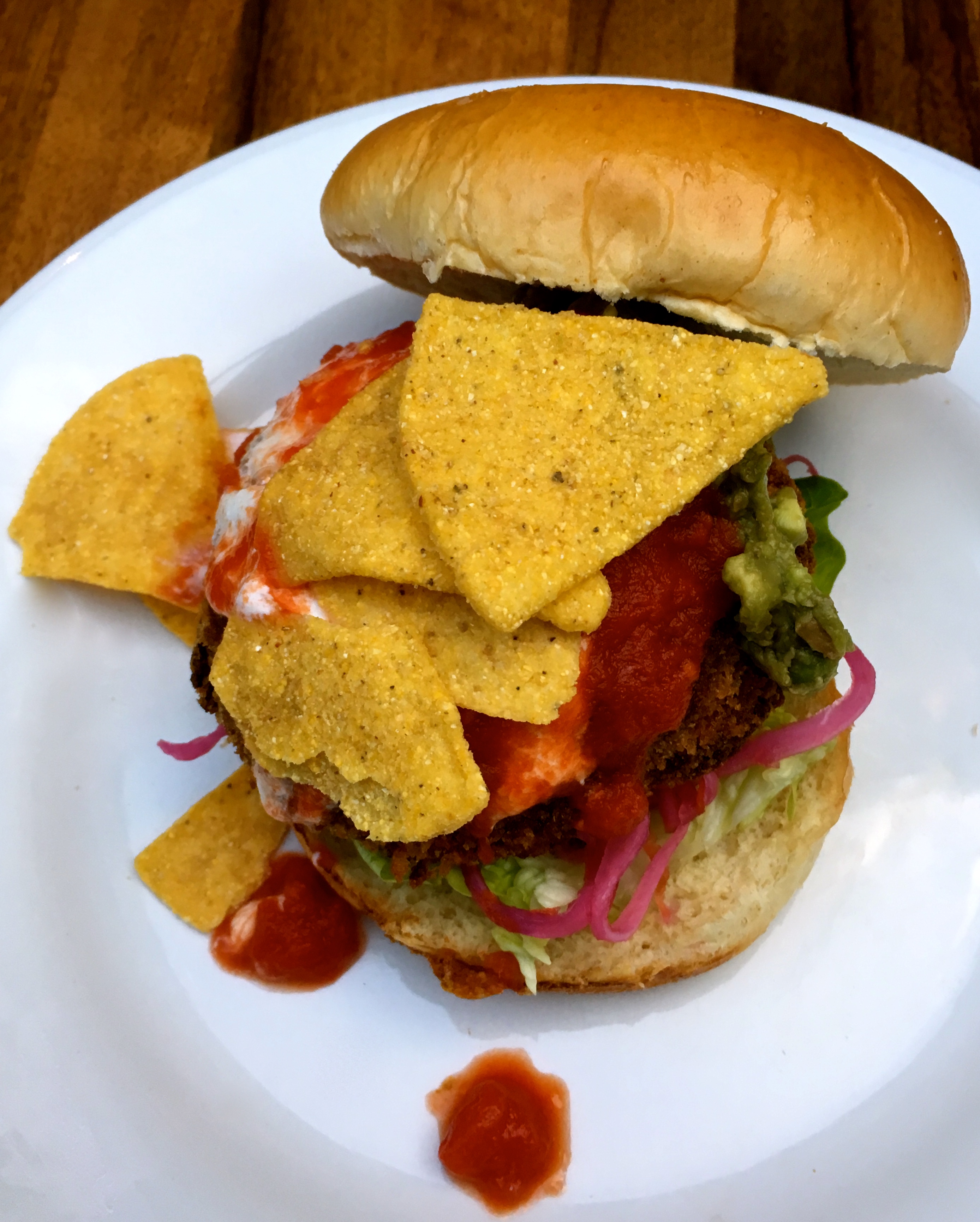 Me valitsimme Admiral Codrington -illaksemme tiistain, jota paikka mainostaa erityisenä burger-iltanaan. Tiistaisin tarjolla on klassikkojen rinnalla aina uusi kokin innovoima erikoispurilainen. Tänään olisi mahdollisuus kokeilla hummerivaihtoehtoa. Vaikka hummeri ja burgeri makuparina kiinnostavat kovasti, päädyn kuitenkin This is the Juan -annokseen, siis falafelpurilaiseen. Lisäkkeeksi valitsen Rainbow slawn. Falafel osoittautuu nappivalinnaksi, ehkä parhaaksi koskaan syömäkseni falafeliksi. Kuten falafel joskus, se ei ole ollenkaan kuivaa ja mikä erikoisinta, sen sisälle kätketty aines on tavallaan tuoretta, salaattia, herneitä ja muuta, ei tavallisen falafelin kaltaista yhtenäistä massaa. Burgerin välistä löytyvät guacamole, salsa ja ranskankerma sopivat kokonaisuuteen nekin kuin nakutettu. Myös seurueemme kaksi muuta falafelin valinnutta pitävät annoksesta kovasti. No, Rainbow slaw ei oikeammin vakuuta; vähän niin kuin coleslaw, jossa majoneesi on korvattu lähinnä etikalla.