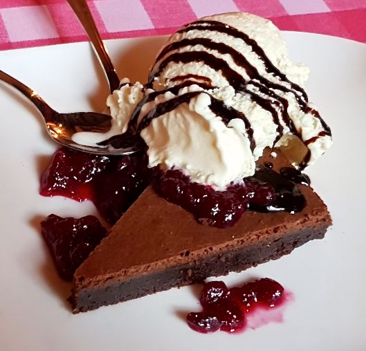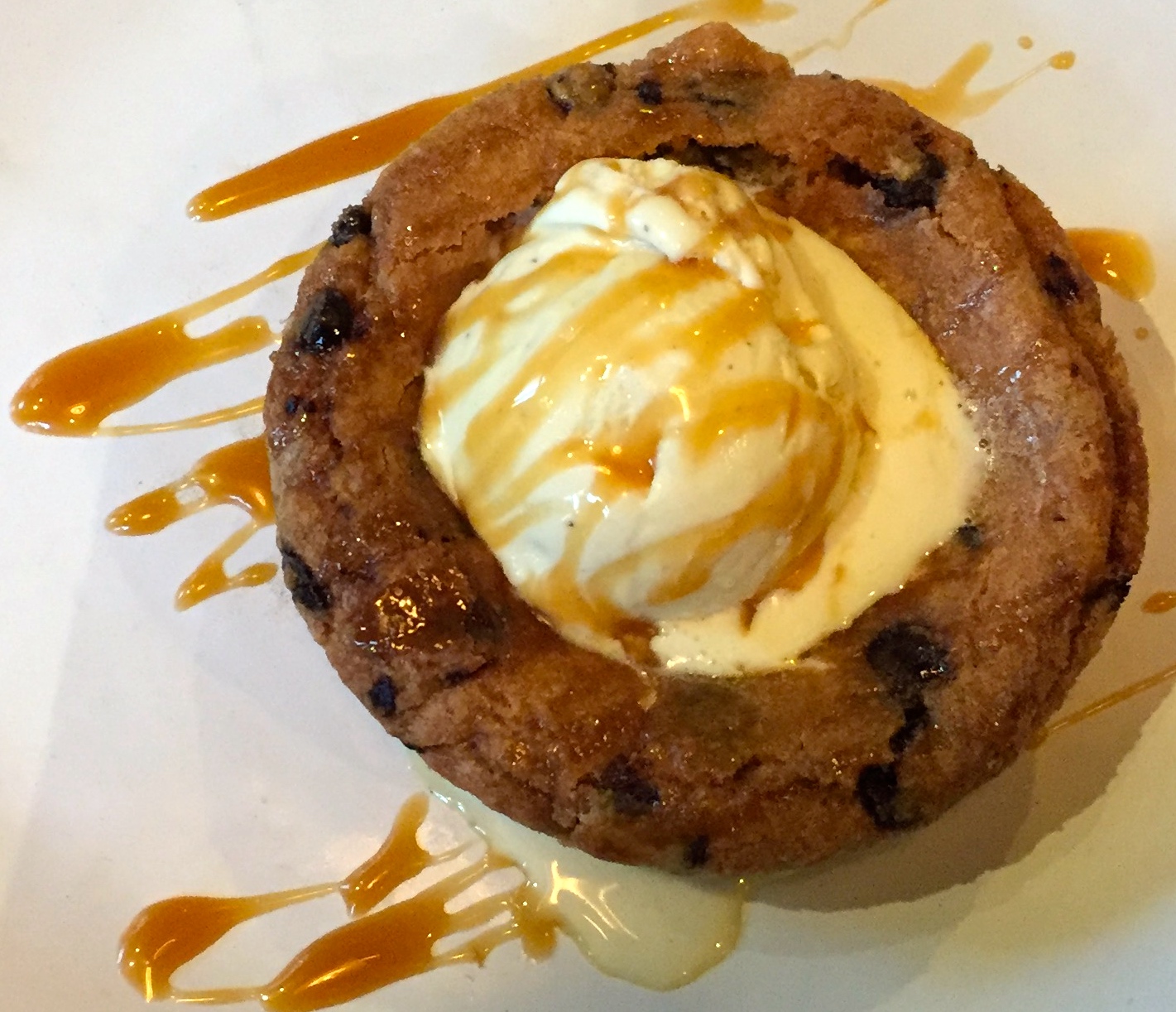 Kun italialaisessa kerran ollaan, ei jälkiruokia tietenkään voi ohittaa. Itse tilaan jäätelöannoksen kolmella maulla: suolaista kinuskia, hunajaa ja minttusuklaata pinnallaan karamellikastiketta, marenkia ja strösseleitä, nam! Aleksi sen sijaan valikoi aterian päättäjäkseen lämpimän suklaakeksin vaniljajäätelöllä ja karamellikastikkeella aateloituna ja pitää hänkin valintaansa hyvänä.