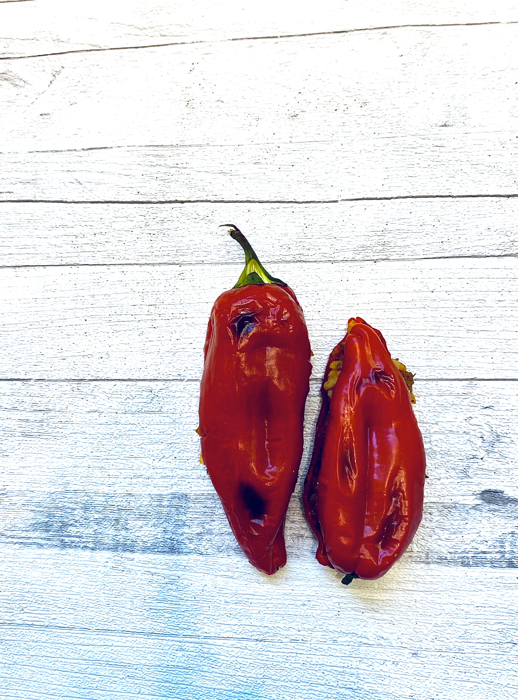 Nosta paiston jälkeen paprikan puolikkaat takaisin päällekkäin, jolloin syntyy hauskoja paprikapurilaisia. Voit tarjoilla puolikkaat myös sellaisinaan pienempinä cocktailpaloina.