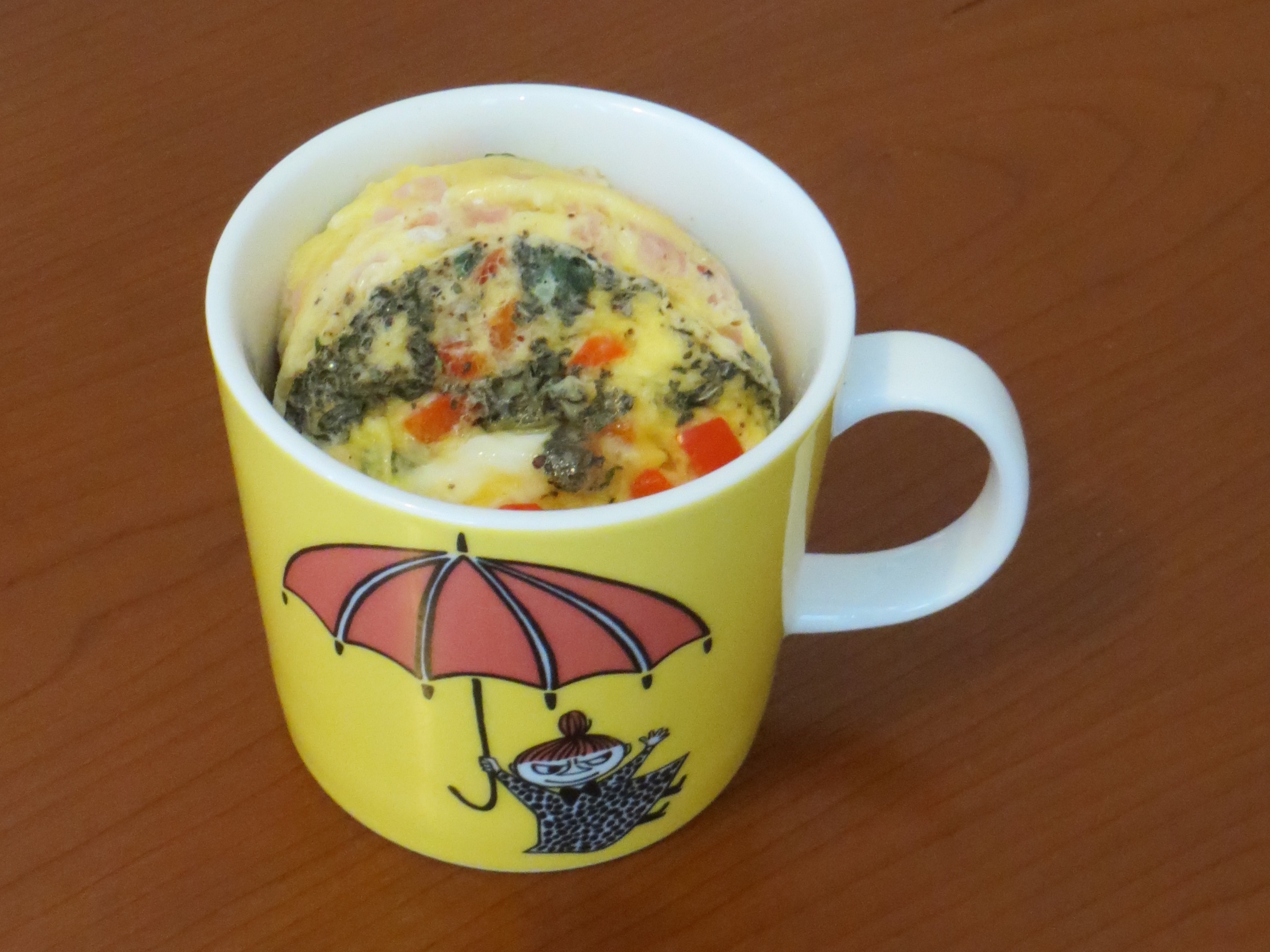 Valitse muki, joka täyttyy kaksikolmasosaa aineksista. Itse testasin Arabian muumimukia, joka taitaa tilavuudeltaan olla noin 3 dl, ja tämä toimi mainiosti.