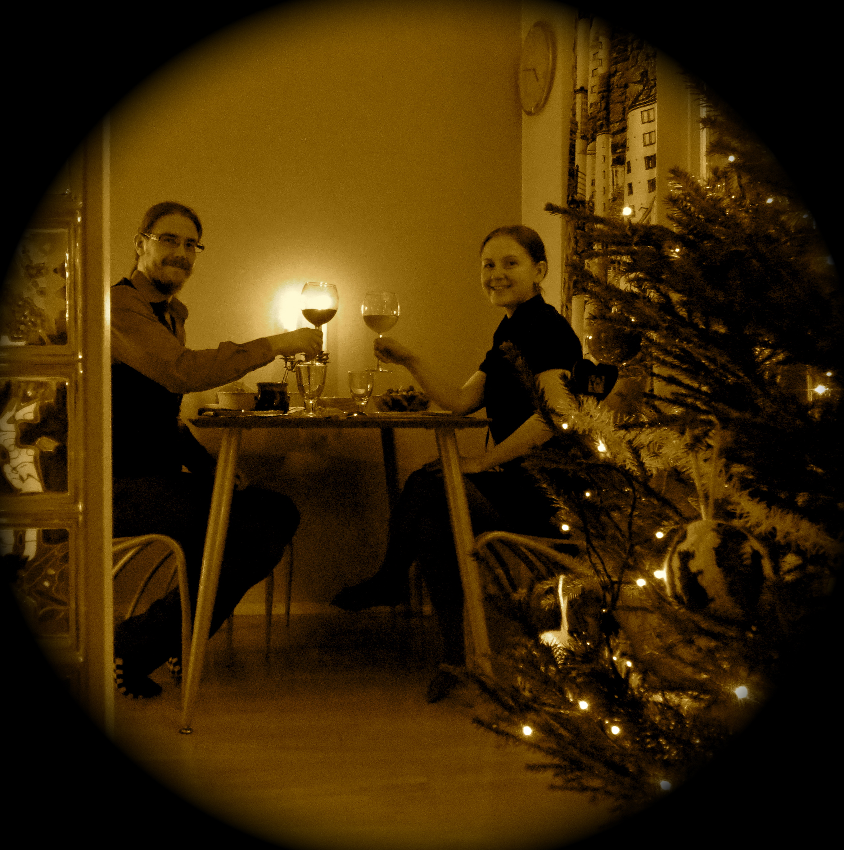 Mitä joulupöytämme uusiin tulokkaisiin tulee sai kinkku, se ensimmäinen itsepaistettu, takuulla sen kaikista suurimman huomion. Ja varmasti eniten lautastilaa perheemme herraedustuksen puolelta. Toki muutama siipale rouvallekin mainiosti maistui. Joka tapauksessa kolme kiloa kinkkua katosi Aleksin sisuksiin sangen sukkelaan ja oma ajatukseni laskiaisen hernekeitosta joulukinkun jäämillä täydellistettynä jäi haaveeksi. No, hyvä näin; ensi vuonna isompi yksilö.