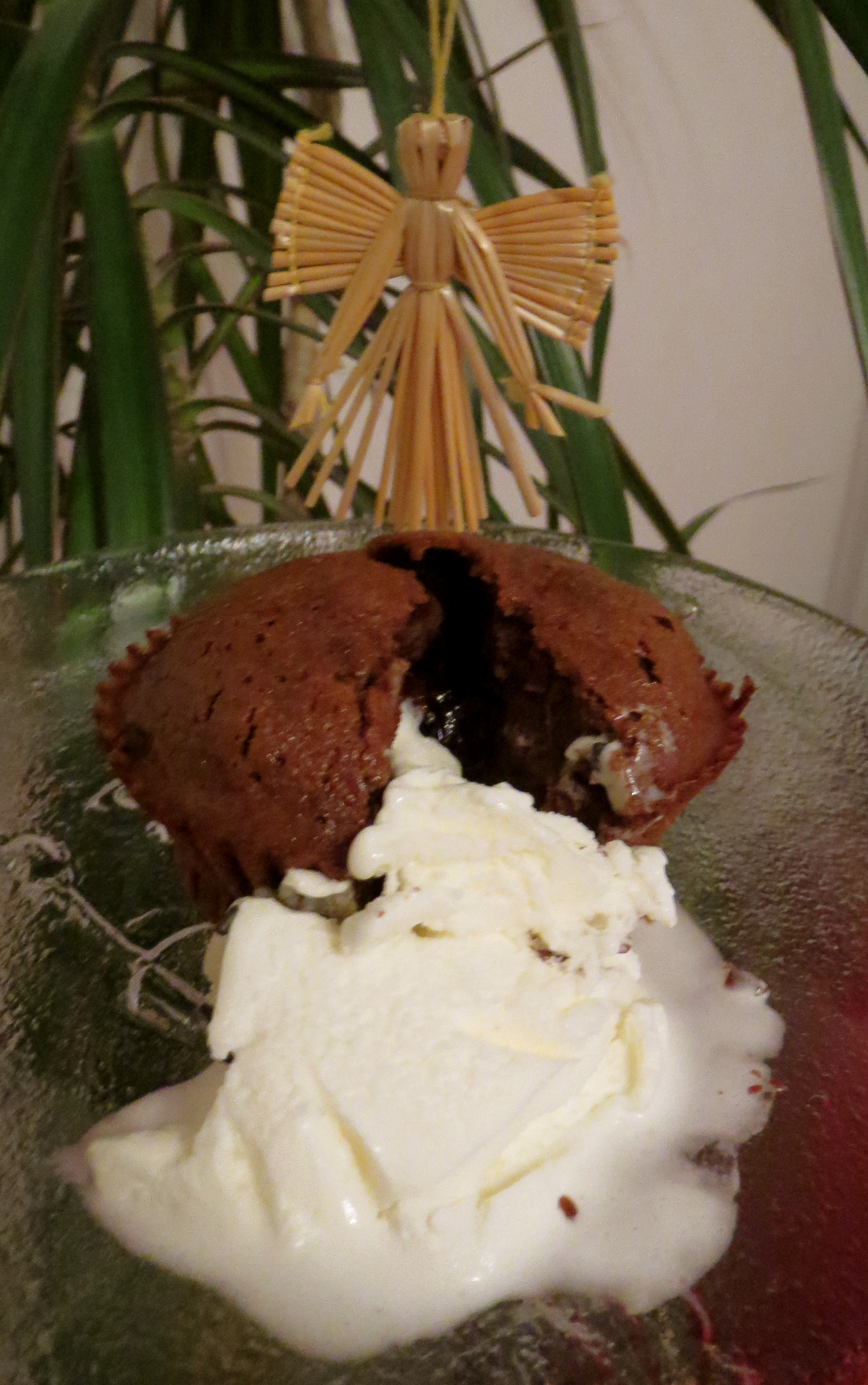 Joulupöydän uutuutena esittelen myös pienet suklaakakut, joihin resepti on poimittu Helsingin Sanomista. Makoisa jälkiruoka, joka valmistuu helposti. Itse emme sellaisiin lukeudu, mutta uskaltaisin väittää, että kyseessä on jokaisen tummasta suklaasta pitävän todellinen pakkotestata -resepti.