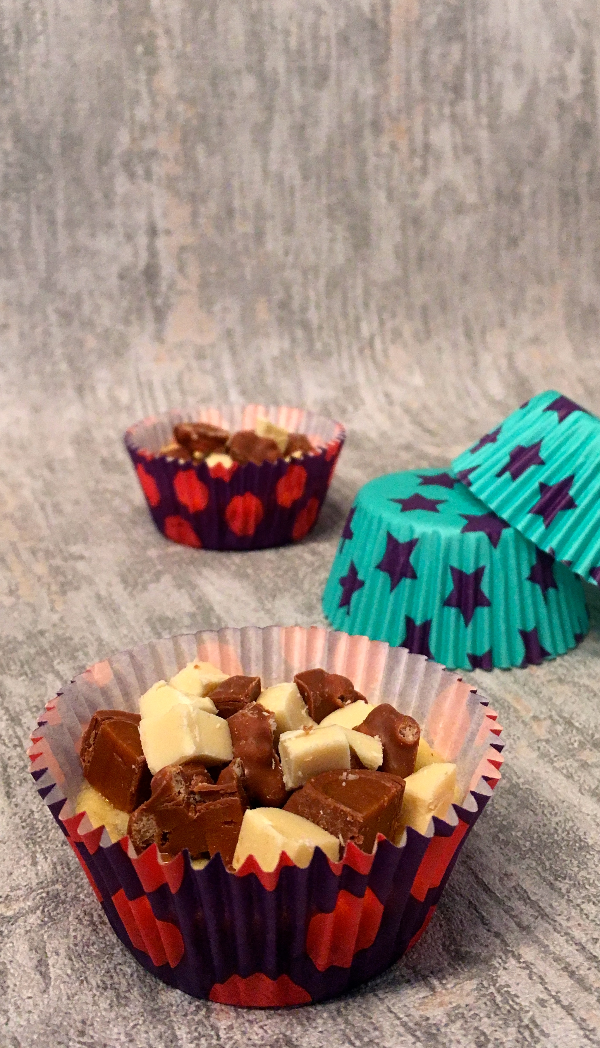 Paloittele Mignonit ja suklaa mikron kestävään astiaan. Sulata ne hellävaraisesti miedolla teholla ja välillä sekoitellen, jotta ne eivät pala pohjaan.