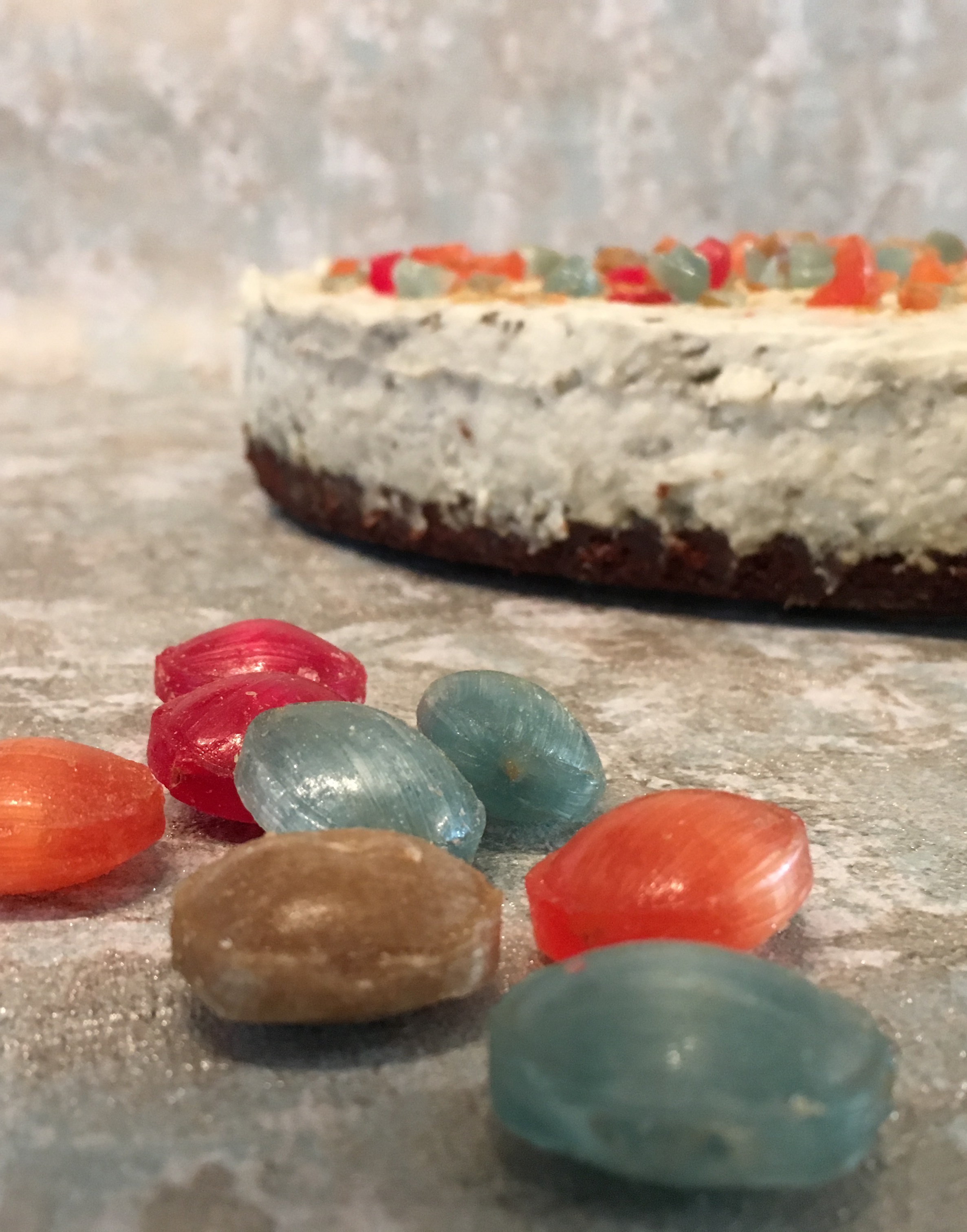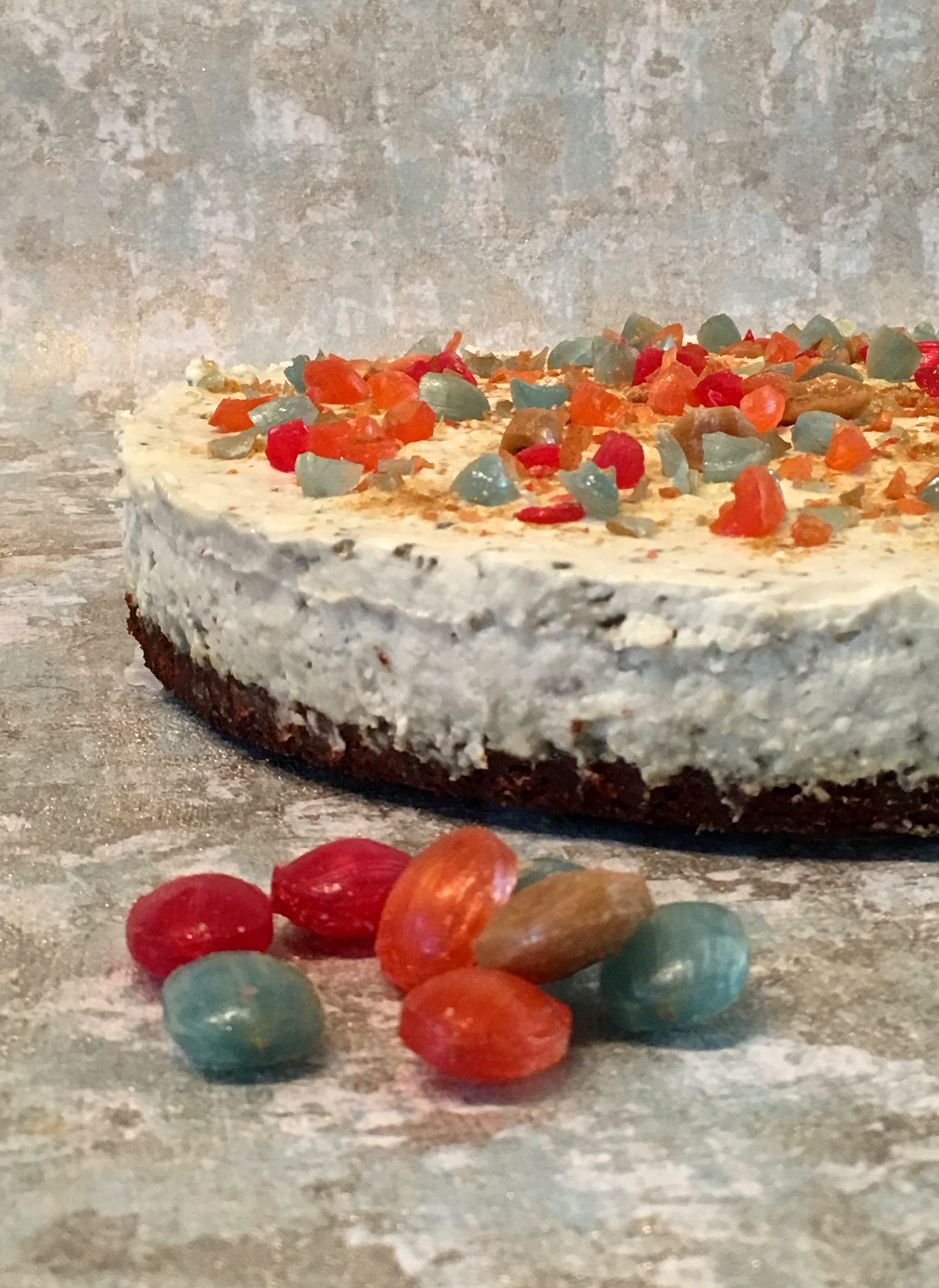 Murskaa keksit pieneksi muruksi ja sekoita sula voi joukkoon. Pingota irtopohjavuoan pohjalle leivinpaperi ja painele keksimurska vuoan pohjalle. Voit myös sipaista vuoan reunoille hiukan rypsiöljyä, jotta kakku irtoaa siitä kauniimmin. Nosta vuoka jääkaappiin täytteen valmistamisen ajaksi.