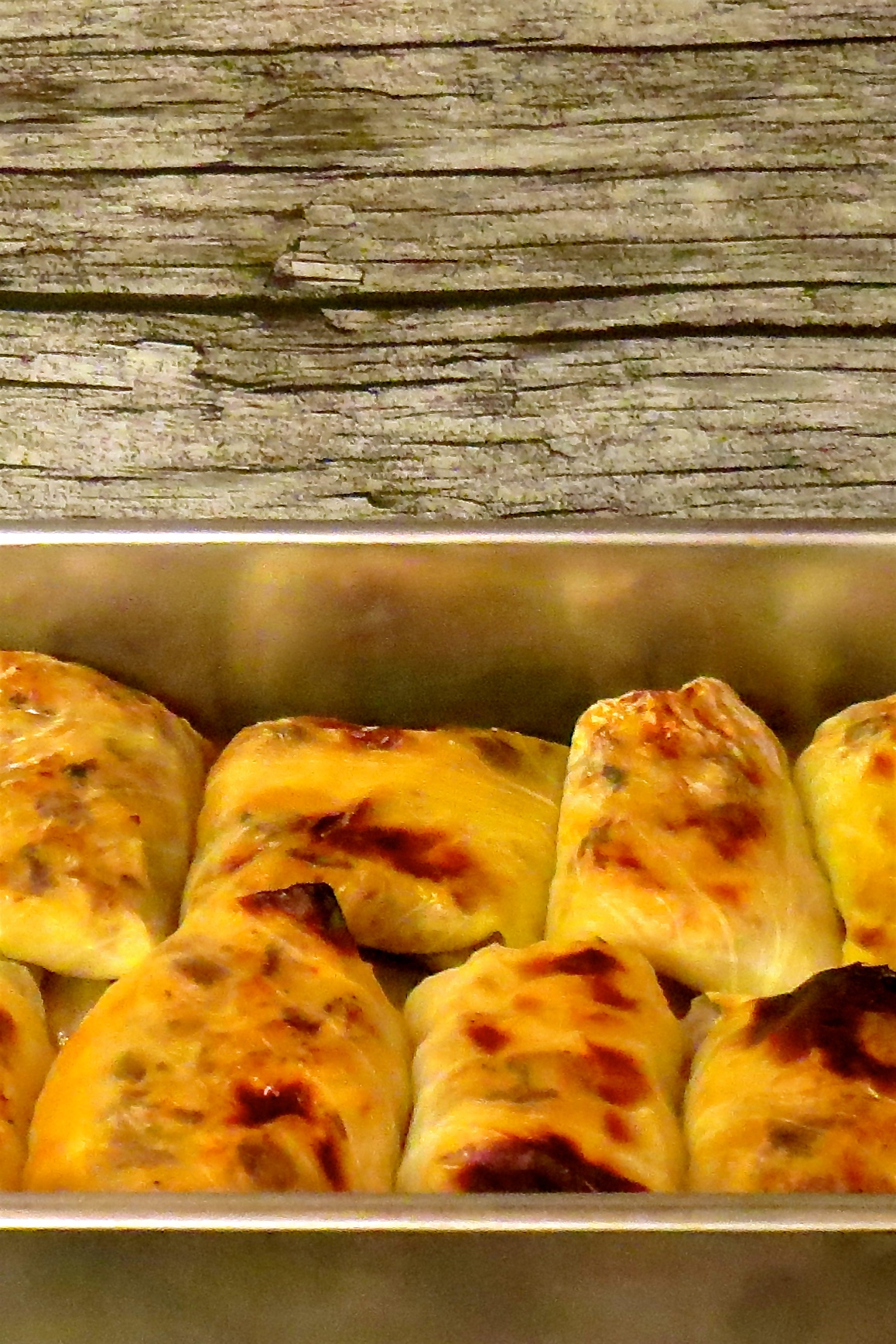 Irrota savoijinkaalista niin paljon isoja lehtiä kuin siitä sopivasti irtoaa. Kaiverra samalla kaalin kova kantaosa pois. Keitä lehtiä isossa kattilassa runsaalla suolalla maustetussa vedessä noin 5 minuuttia kunnes lehdet hiukan pehmenevät. Valuta kaalinlehdet ja ohenna varovasti niiden lehtiruoti (varo ettei kaalinlehtiin tule reikiä). Keitä loput kaalin sisuksesta pehmeäksi ja leikkaa kohtalaisen hienoksi.