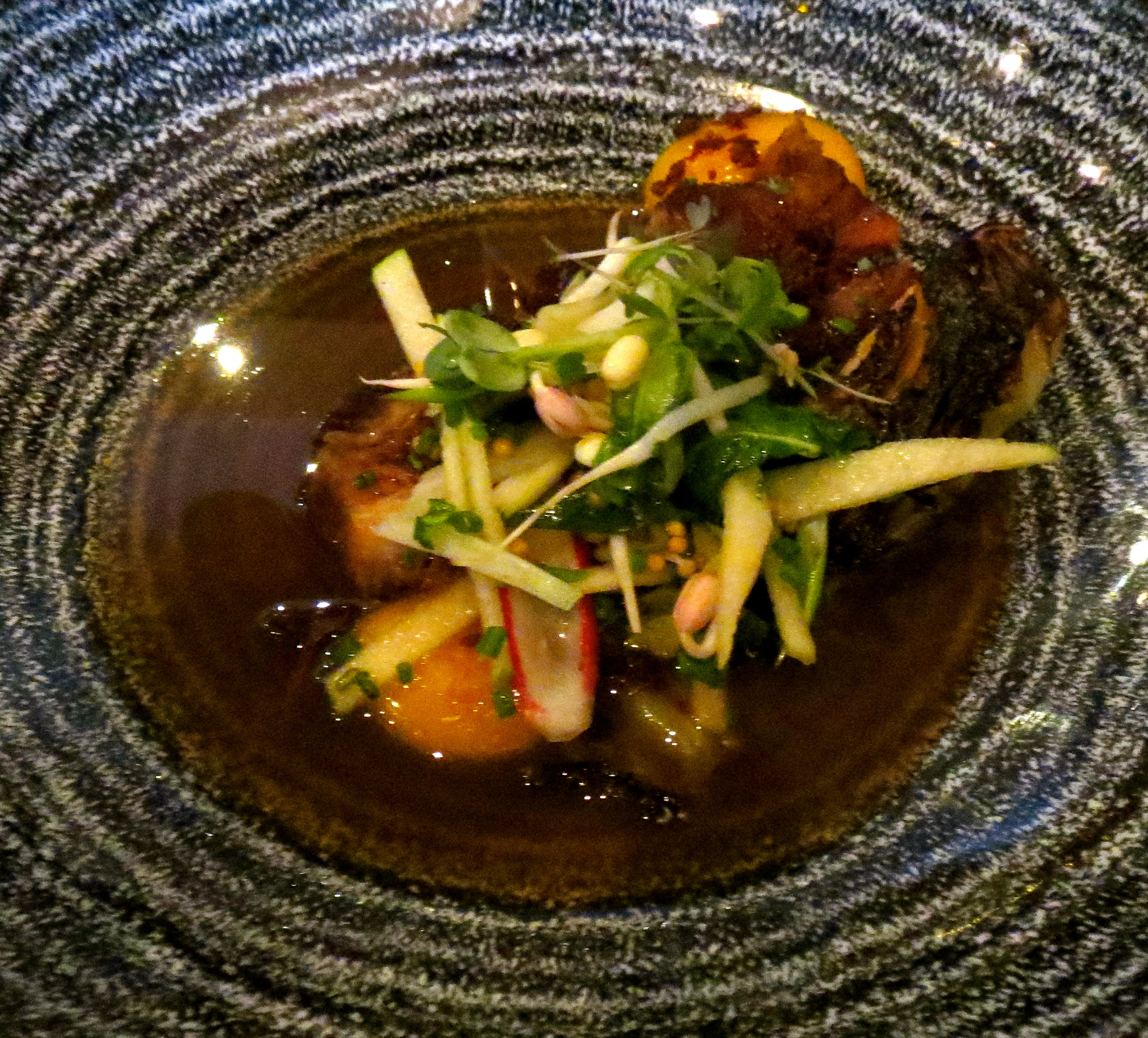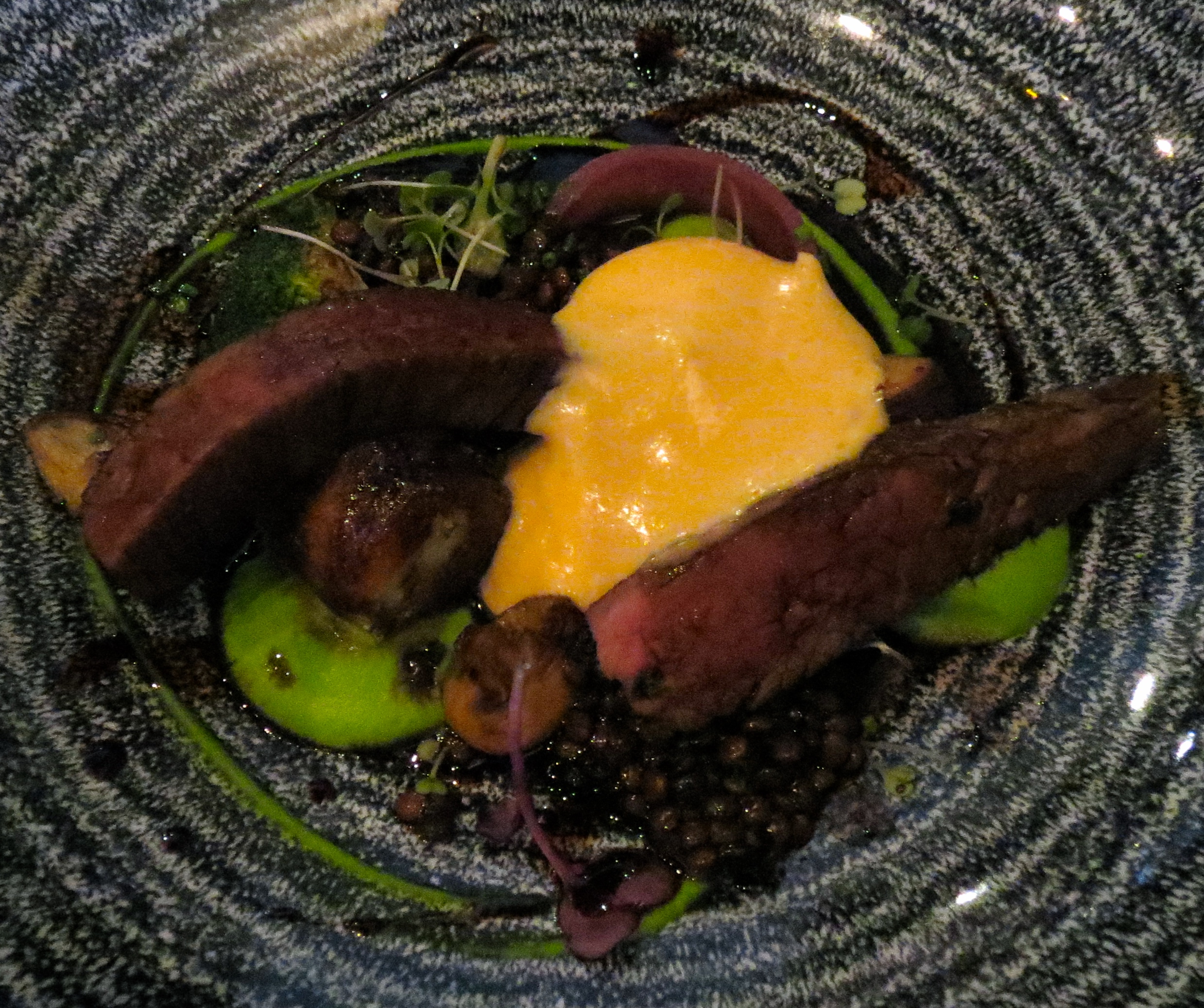 Myöskään Aleksin pääruokavalinta ei mene niin sanotusti kaikkien taiteen sääntöjen mukaisesti. Etukäteen tiedusteltaessa selviää, että annos hitaasti kypsennettyä villisikaa, tryffeli-perunamuusia ja tummaa valkoviinikastiketta, joka listalta puhuttelee, sisältää edellä mainittujen lisäksi myös portobelloa. Aleksi päättää kuitenkin ottaa annoksen ilman portobelloa. Tämä kuulemma käy päinsä. Kun annos sitten saapuu, se todella saapuu portobelloitta – tilalla ei tosin ole mitään muutakaan. Melko lihaisaa, jopa Aleksin kaltaisen lihamiehen makuun. Suuri lautanenkin on miltei tyhjä. Kyllä sitä jotain vastinetta odottaisi poistetun raaka-aineen tilalle saatavan, varsinkin kun tilaa listan kalleimman annoksen (28,00€). Erikoista palvelua. Palvelusta puheen ollen tarjoilija on koko ajan niin sanotusti ystävällinen, mutta jotain kytee pinnan alla. Ihan täysin en voi luottaa hänen hymyynsä.