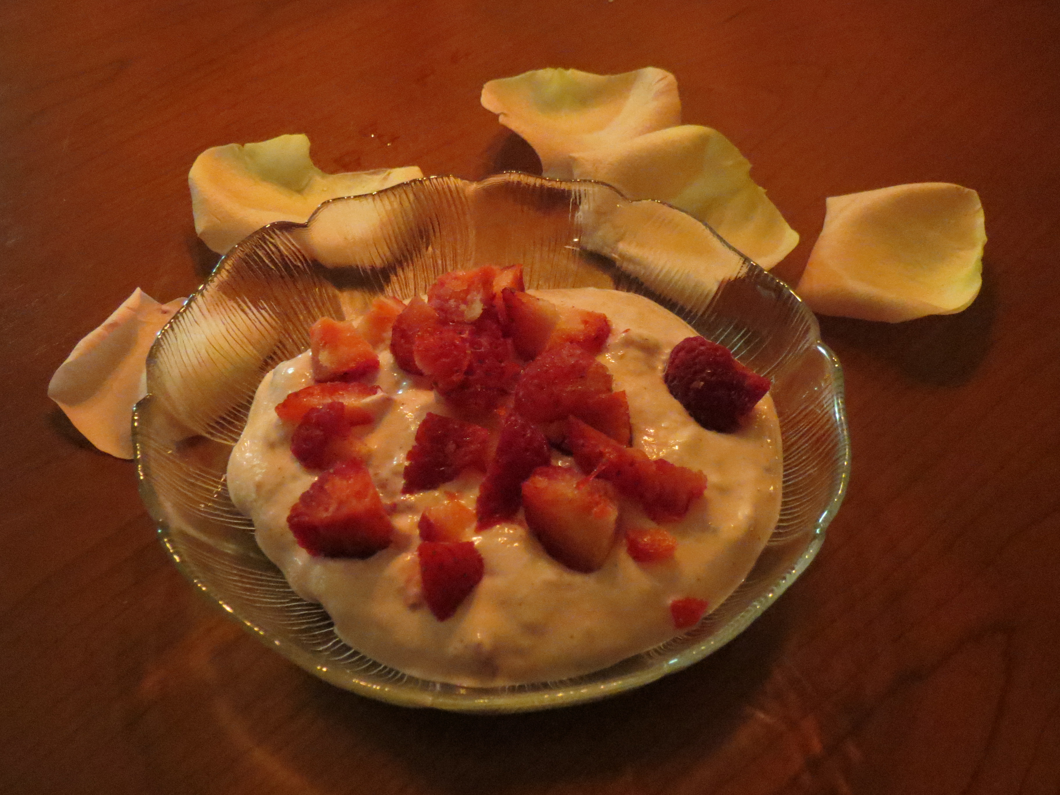 Naistenpäivän kunniaksi sain siis eilen ihastuttavan illallisen. Aluksi nautimme perinteistä tomaatti-mozzarellasalaattia, pääruoaksi kasvissosekeittoa sekä sämpylöitä ja jälkiruoaksi murupohjaista mansikkarahkaa. Unohtaa ei sovi myöskään IMG_0831mansikoilla kuorrutettua Fresita-maljaa!