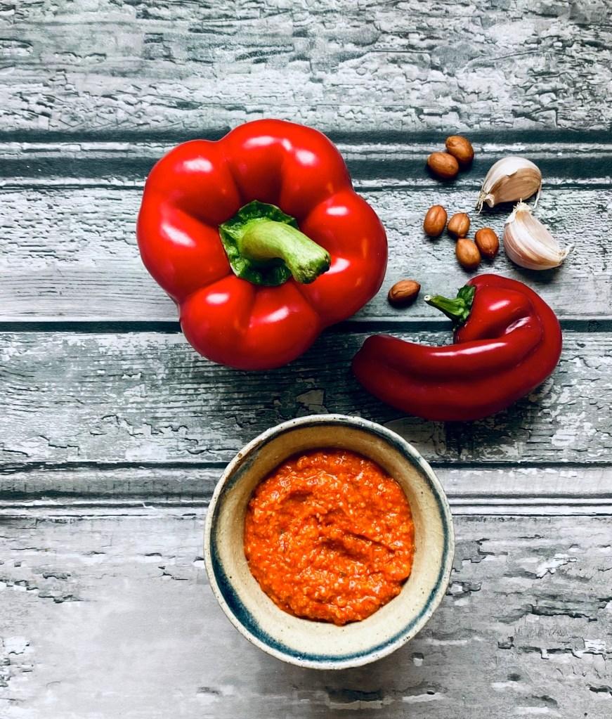 Valikoidessani jälkeen kerran sopivaa käyttökohdetta jääkaapissa turhan panttina oleskeleville paprikoille – kauppojen hävikkihevilaatikoiden vakioasukkaille – muistin mainion paprika-asian, romesco-kastikkeen. Näinpä meillä kohta oli iso purkillinen maukasta tahnaa, joka sopii mainiosti esimerkiksi uunikasvisten ja erilaisten lihojen kumppaniksi. Vapun brunssikattauksessa se löysi niin ikään helposti paikkansa sämpylöiden päältä ja nakkien rinnalta, taisi se kruunata jokusen hodarinkin.