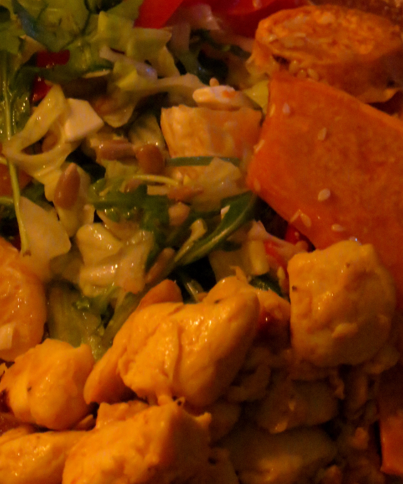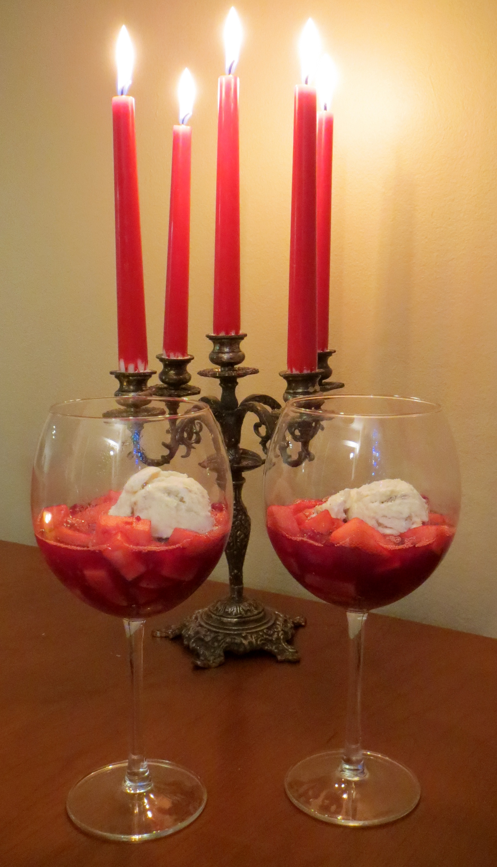 Ensimmäisen kihlapäivämme kunniaksi tarjoilin tulevalle aviomiehelleni pienimuotoisen IMG_0711juhlaillallisen; katkarapua avokadossa, bataatti-broilerisalaattia sekä Fresitahyytelöä jäädytetyllä vaniljavanukkaalla koristettuna.
