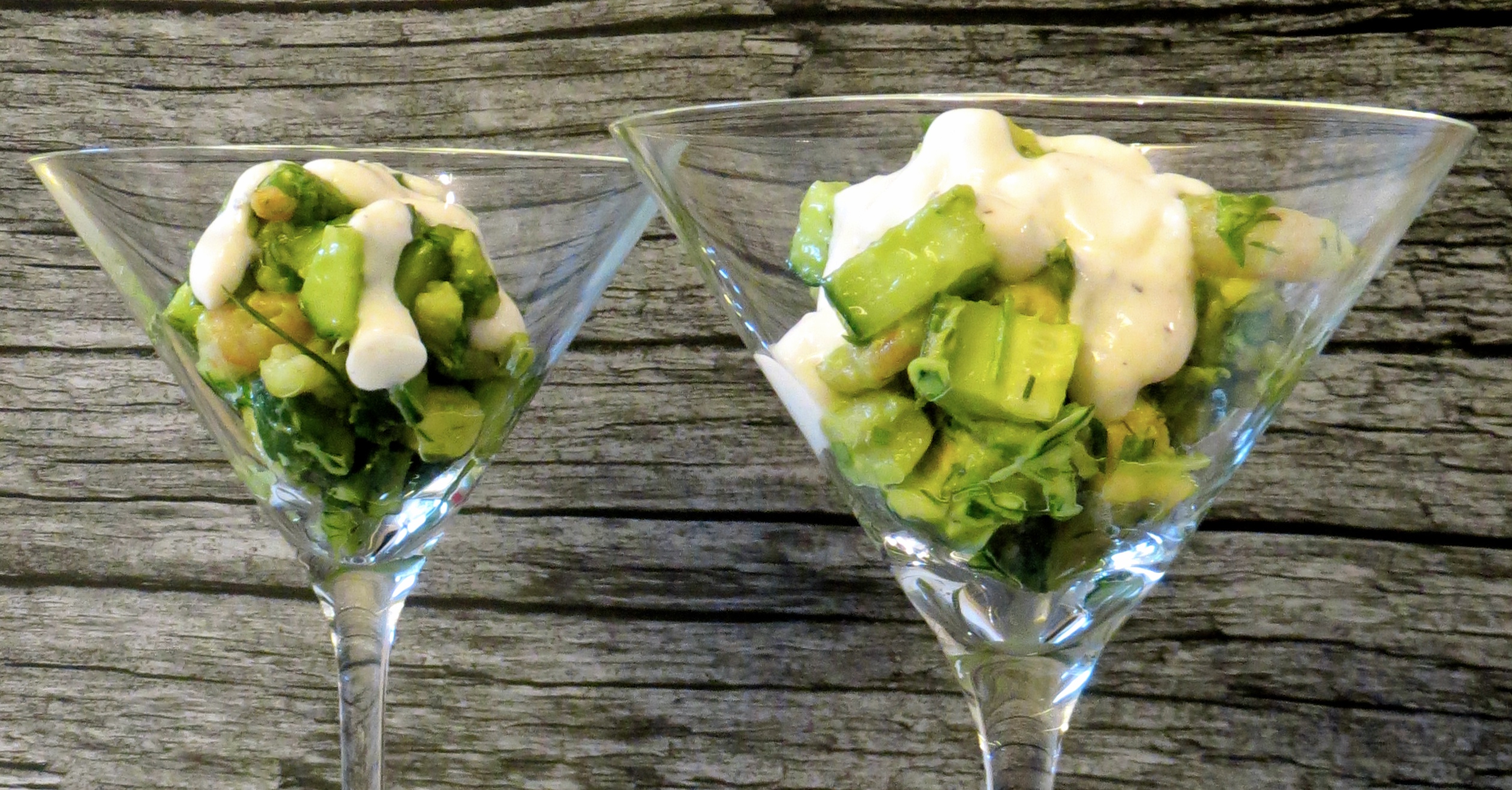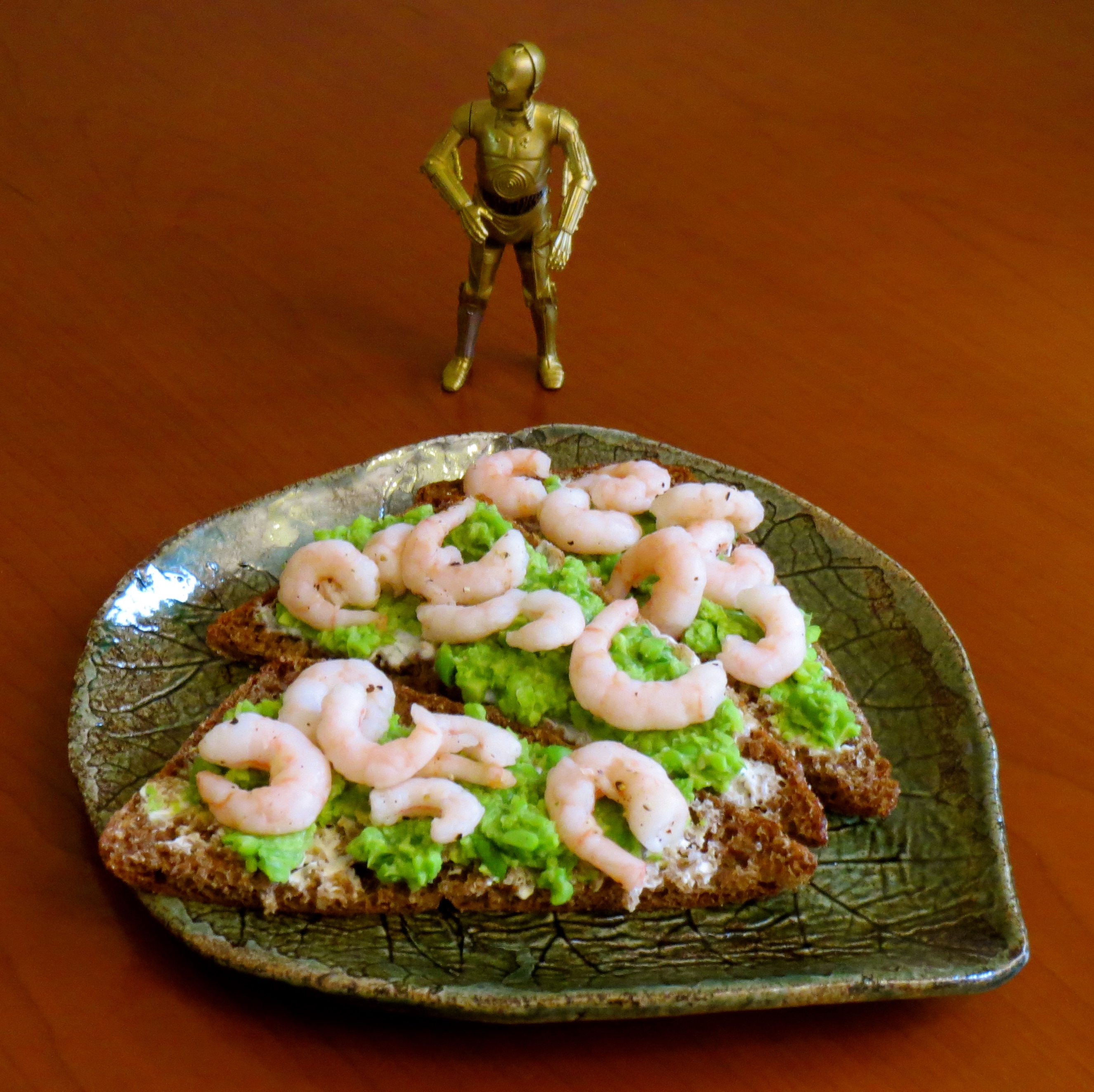 Jätän tällä kertaa ainesosien määrät mainitsematta, jokainen valitkoon itse, kuinka haluaa niitä suhteuttaa. Lopputulos on varmasti maukas. Ehkä pientä osviittaa tarjoaa se, että itse käytin kahteen alkupala-annokseen puolikkaan avokadon.