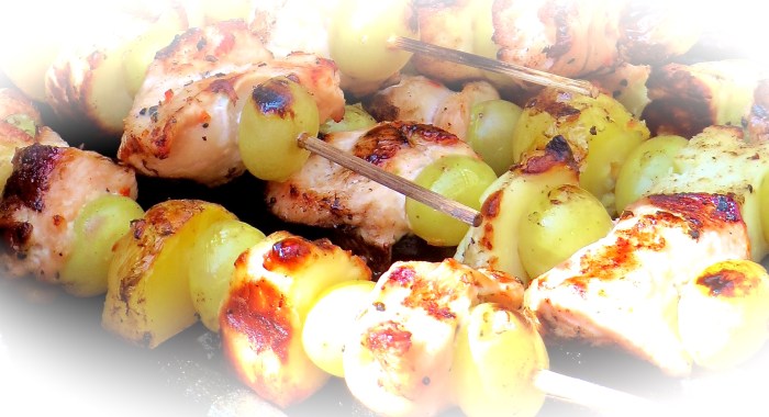 Kasari tai ei, ateriamme oli joka tapauksessa onnistunut. Rapujen ja avokadon suurena ystävänä alkucocktailimme viehätti ilman muuta, mutta myös vartaat olivat erityisen mainioita. Mitään sen kummallisempaa niissä ei ollut, mutta meille uusi grillituttavuus, viinirypäle, vakuutti niin vahvasti, että nosto blogiin on paikallaan.