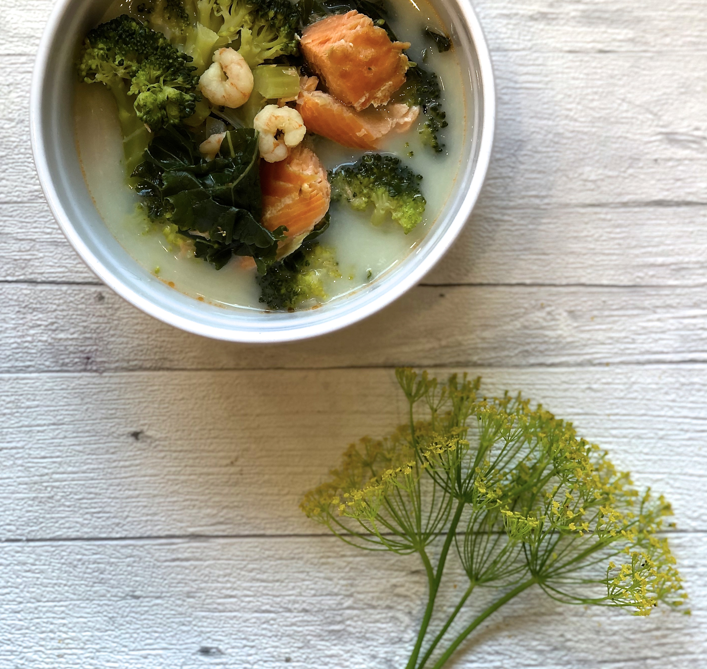 Eilisellä kirjastokäynnillä satuin kiinnittämään huomioni Martat-lehden kalakeittoartikkeliin. Mitä luultavammin tulen kokeilemaan artikkelissa esiteltyjä reseptejä laajemminkin, mutta ensimmäisenä testiin pääsi katkarapu-savulohikeitto.