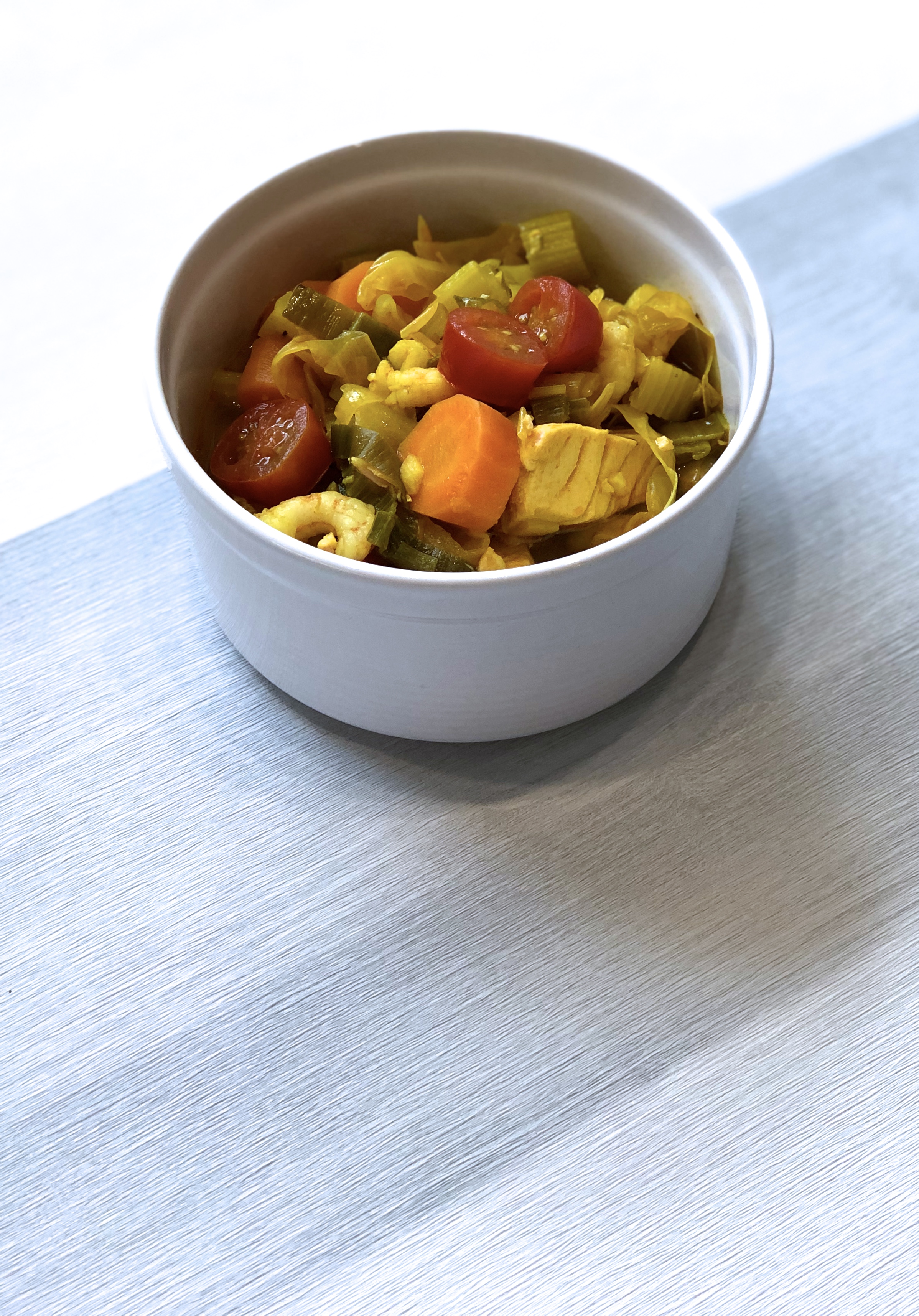 Lisää kurkuma, chilijauhe, tomaattipyree ja hunaja. Jatka kuullottamista miedolla lämmöllä vielä pari min.