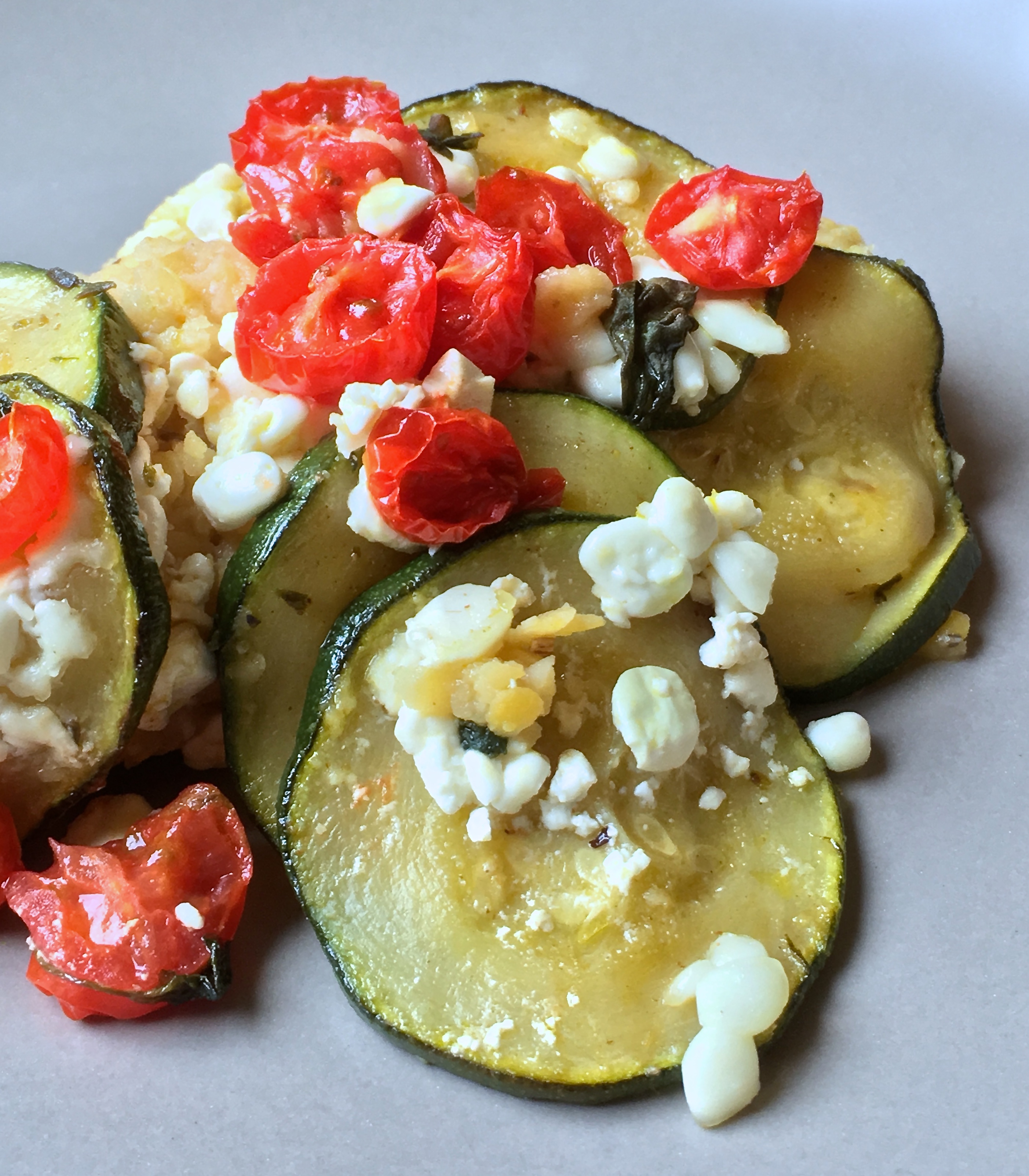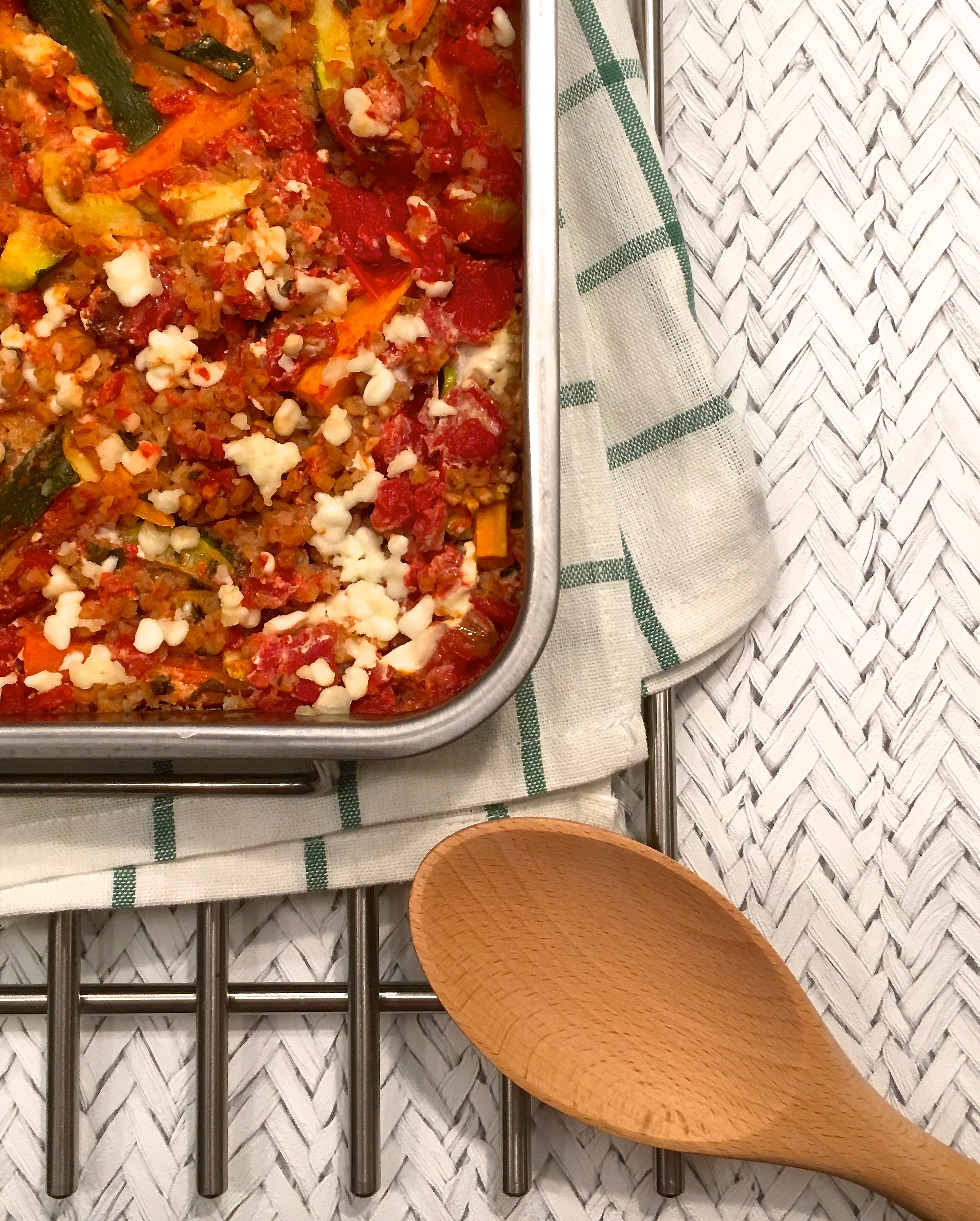 IMG_8383Syntyi seuraava Maku-lehden Meillä kotona -sivustolta bongaamani kesäkurpitsa-linssipaistos, jonka reseptiikkaa muuntelin hiukan ruokavarastojamme sekä makunystyröitämme paremmin helliväksi versioksi. Lopputulos oli kiva; ruoka sopii hyvin syötäväksi myös sellaisenaan, mutta ehkäpä joku voisi haluta sen kumppaniksi vaikkapa lihaa tai kanaa. Näen tämän istuvan hyvin myös grilliruoan rinnalle.