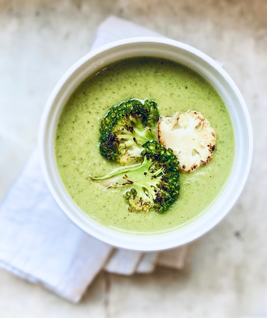 Hurmaava muutaman ainesosan kukkakaalikeitto ja rapeat lehtikaalisipsit