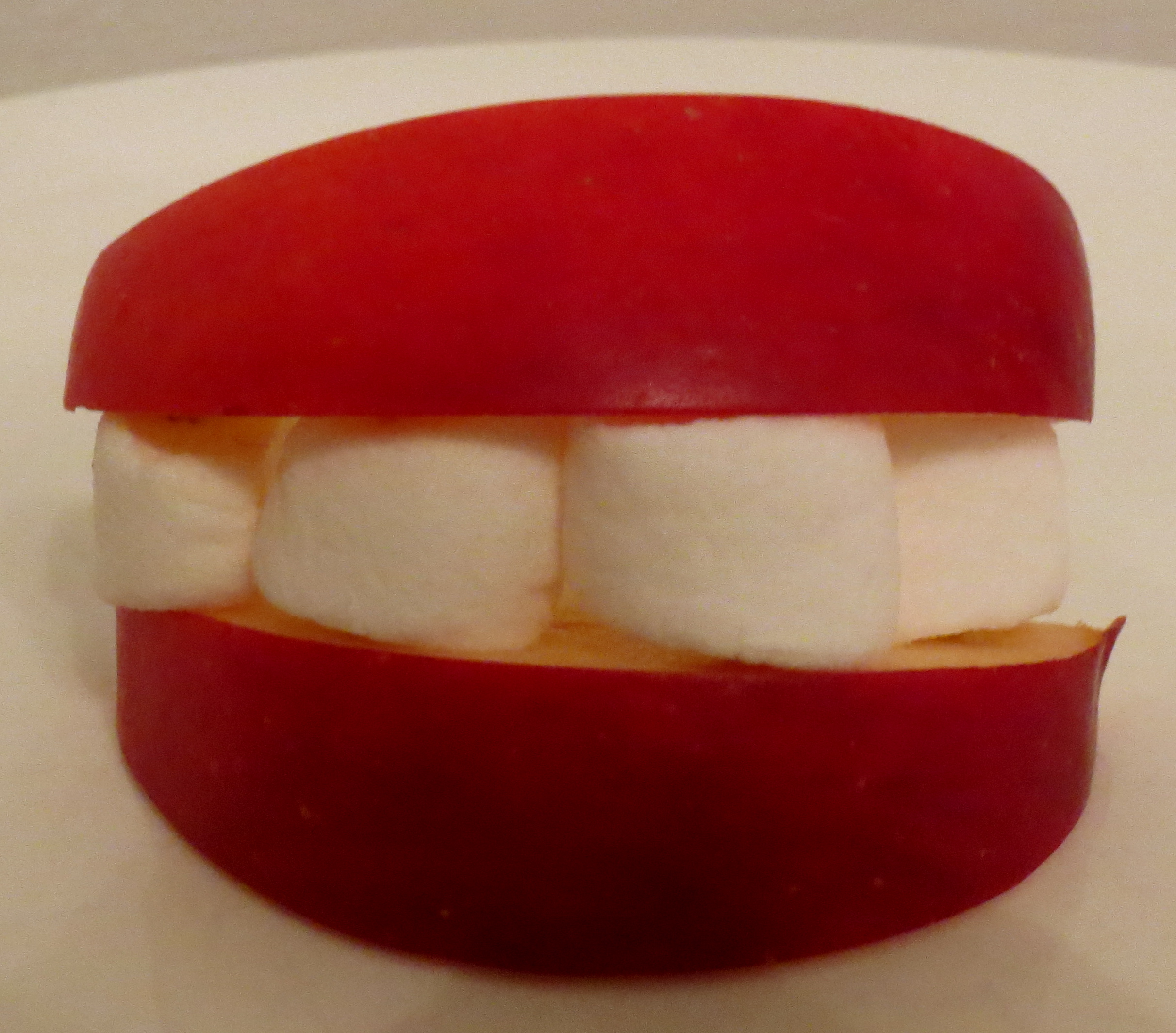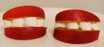 Leikkaa levyistä sormien tapaan eri pituisia suikaleita. Paina jokaiseen suikaleeseen yksi manteli kynneksi. Muotoile suikaleet varoen sormiksi.