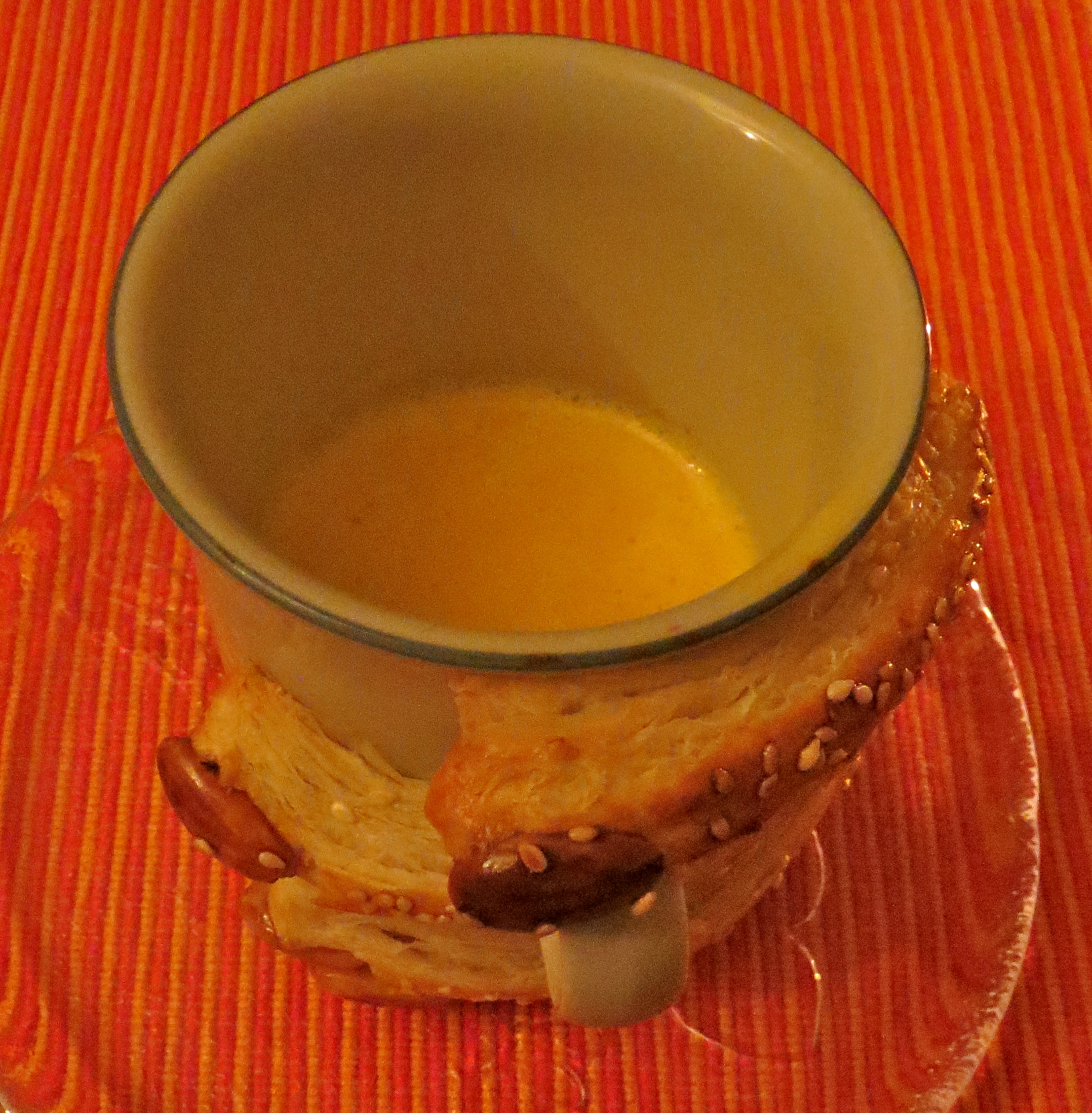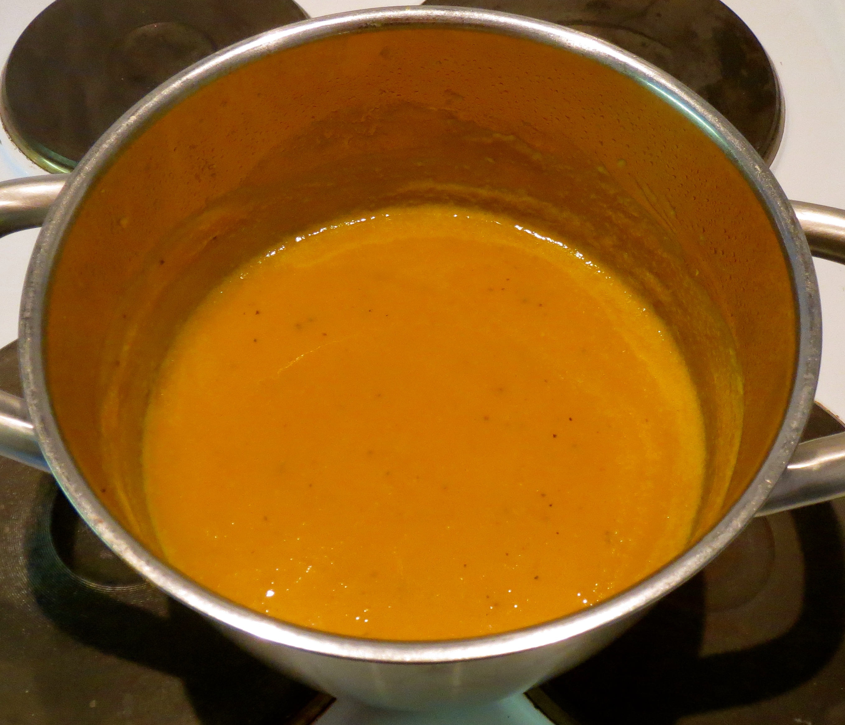 Erityisen hauskaa tässä keitossa on, että valmistin sen oranssista eli säilöntäkurpitsasta, jonka olen mieltänyt lähinnä kurpitsalyhtyjen rakennusaineeksi. Tänä vuonna täytynee siis ottaa sisällys talteen. Kurpitsalyhdyn valossa voisi olla hauskaa nautiskella pyhäinpäivän aterian alkajaisiksi samaisesta kurpitsasta keiteltyä keittoa.