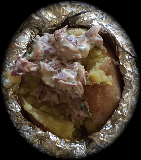 Hienonna poro ja maustekurkkuviipaleet sekä persilja ja mahdollinen punasipulihilloke. Sekoita kermaviilin joukkoon kaikki täytteen ainekset.