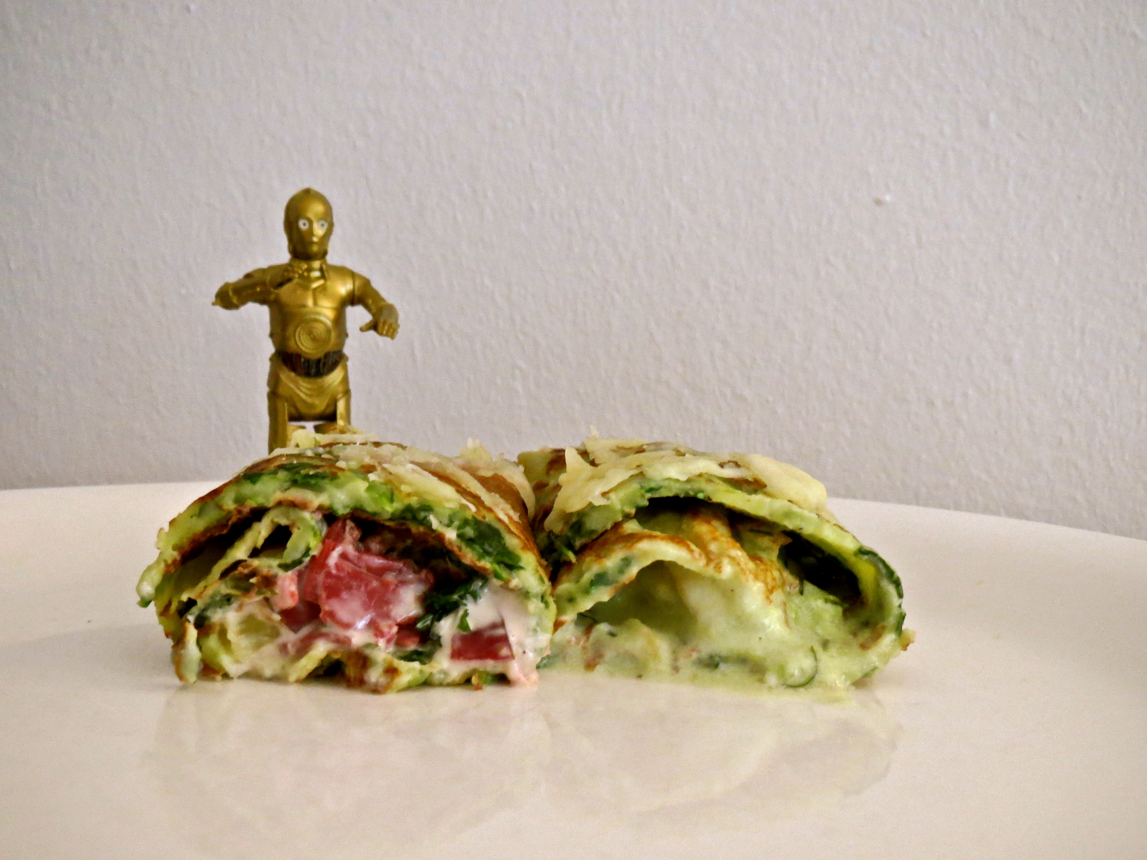 Mitäpä siis tarjoilin? Alkuruoaksi kurpitsakeittoa, sen jälkeen täytettyjä pinaattilettuja kahdella tapaa, poro- ja katkarapu-avokadotäyttein.