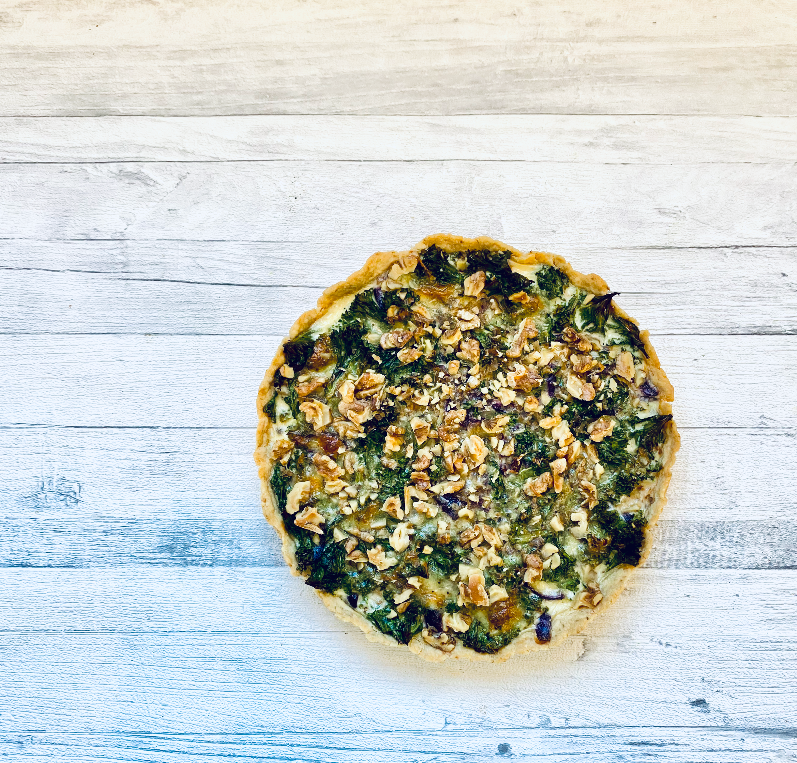 Piirakan päätähtenä loisti lehtikaali ja sen pinnalle ripotellut saksanpähkinät tekivät siitä täydellisen rapean, juuri lounaspiirakaksi sopivan juustolla täyteläistetyn kokonaisuuden. Kun valitut ainesosat loksahtavat osuvasti paikoilleen, yksinkertainen on todellakin kaunista – ja maukasta.
