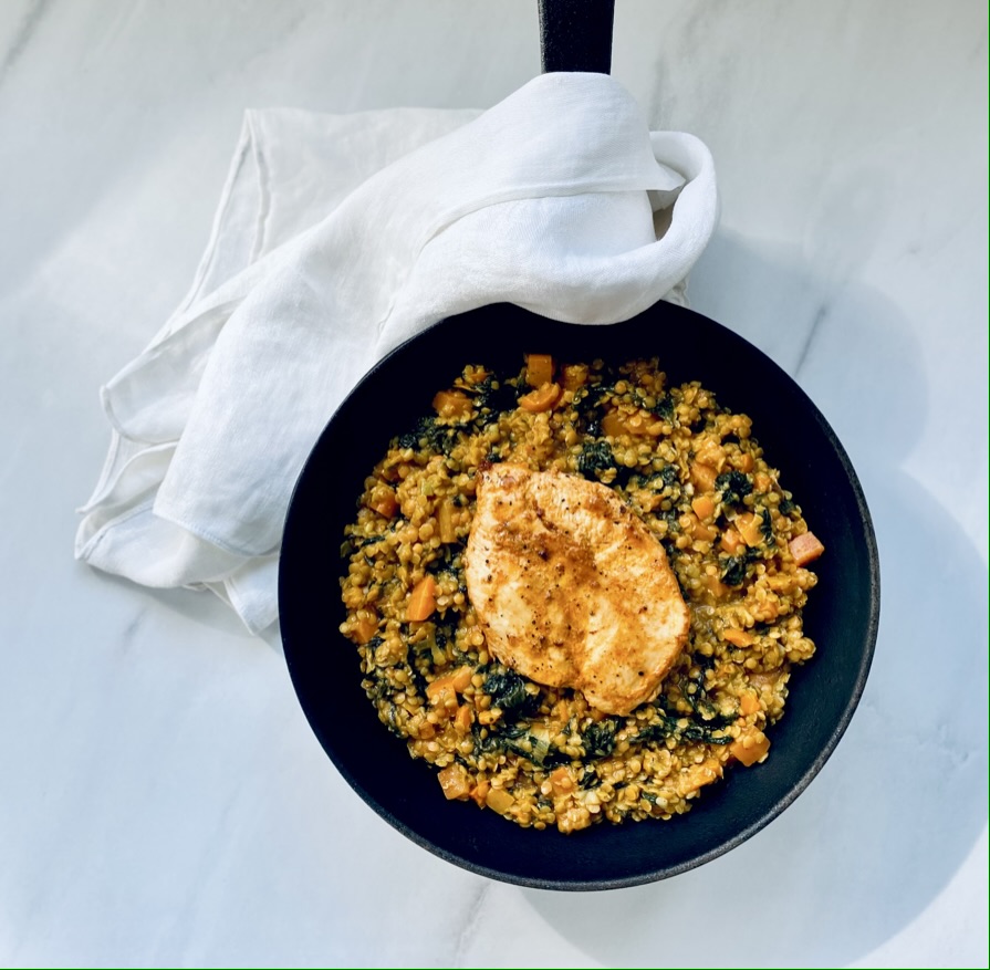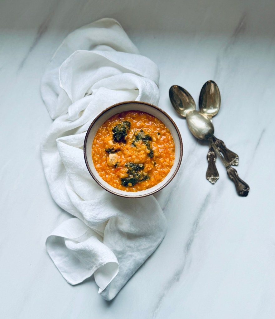 Herkullinen, terveellinen ja melko pitkälti itsekseen kattilassa kypsyvä vaihtoehto on seuraava linssi-kurpitsakeitto, johon linssit tuovat mukavasti ruokaisuutta. Kun chilit säätää sopiviksi – halukkaat voivat lisätä annoksiinsa vaikkapa srirachaa – tästä saa helposti koko perheelle mieluisan aterian, jota voi keitellä vaikka tupla-annoksen ja tarvittaessa pakastaa loput sopiviksi annoksiksi. Näin mahdollisesti kiireisinä joulunaluspäivinä voi hyvillä mielin keskittyä joulun valmisteluun ja odotukseen.
