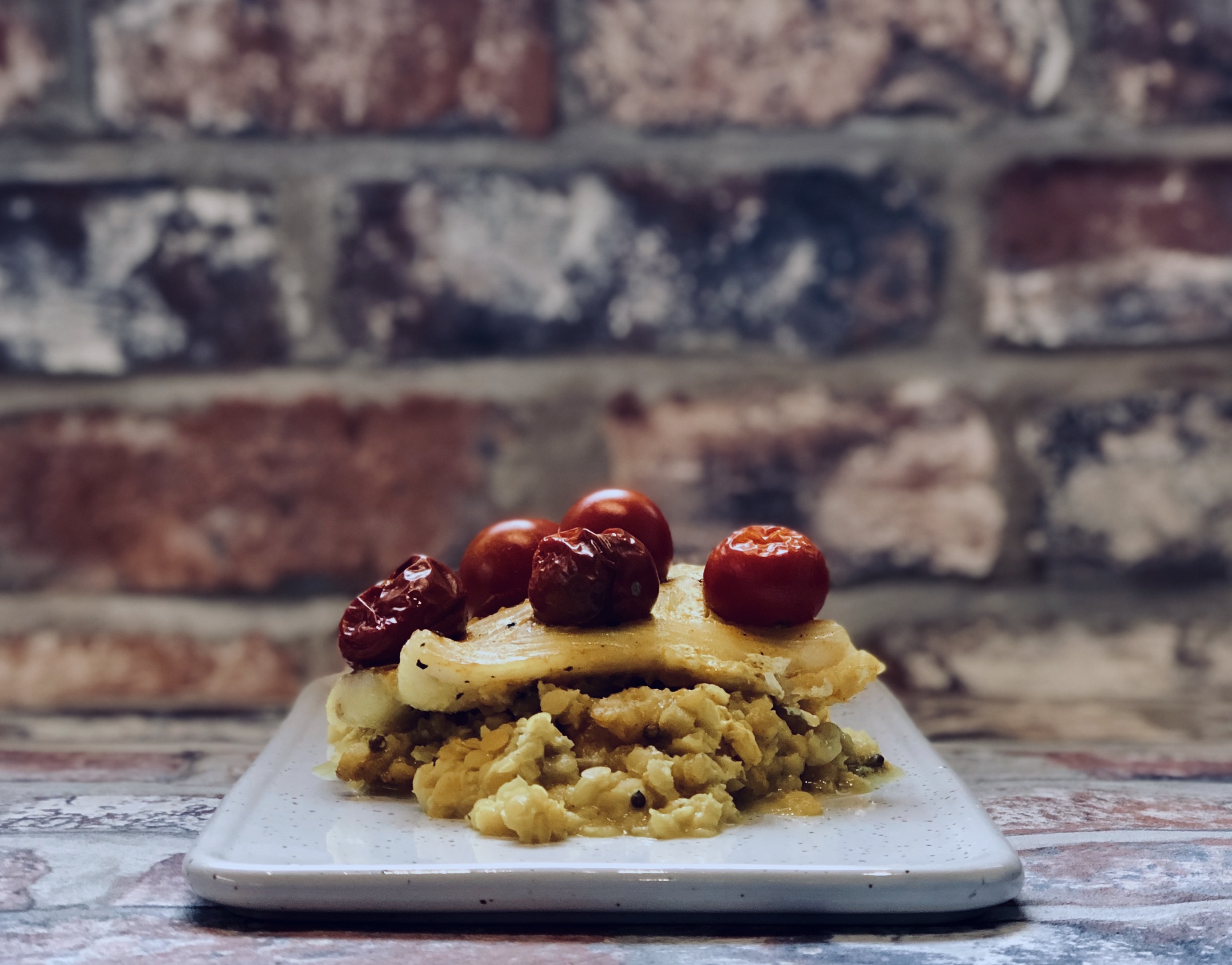 Uskon törmänneeni tähän reseptiin sen jälkeen, kun kirjoitin Googleen jotakin tämän kaltaista: kesäkurpitsa, linssit, tomaatti. Sillä sitä tämä pitkälti on; tomaattista linssikastiketta ja kesäkurpitsasiivuja vuoassa kauniisti kerroksittain. Siis vähän niin kuin lasagnea, mutta kovin, kovin kevyttä sellaista, sillä niin juusto- kuin valkokastikekin loistavat poissaolollaan.