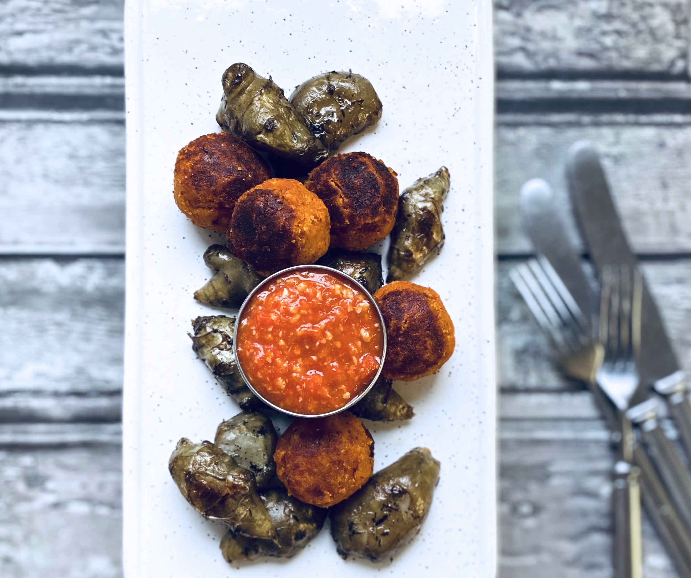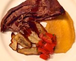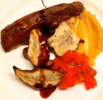 Ateriamme ei suinkaan jäänyt yksinomaan tähän pysähtyneeseen strutsinjuoksuun, vaan koristelimme sen melko hienoinkin hepenein, Copas y Tapas : erilaisia tapoja -kirjan avuin. Täytyykin sanoa että nämä tapakset, jotka asettelimme sekä alkuruoan että lisäkkeiden asemaan olivat tällä kertaa ateriamme kruunu. Erityisesti makuhermoja hivelivät porkkana-sahramikeitto sekä karamellisoitu sipulipyree, mutta myös yksinkertaiset paahdetut maa-artisokat istuivat ateriakokonaisuuteen mainiosti ja ansaitsevat ehdottomasti tulla tehdyiksi uudelleenkin. Edellä mainittu opus, joka pohjautuu samannimisen helsinkiläisravintolan tarjoilemiin annoksiin, tulee takuuvarmasti esittelyyn tuota pikaa, enkä olisi niinkään ihmeissäni, mikäli pujahtaisimme jo hyvinkin pian kyseiseen Helsingissä sijaitsevaan ravintolaan.
