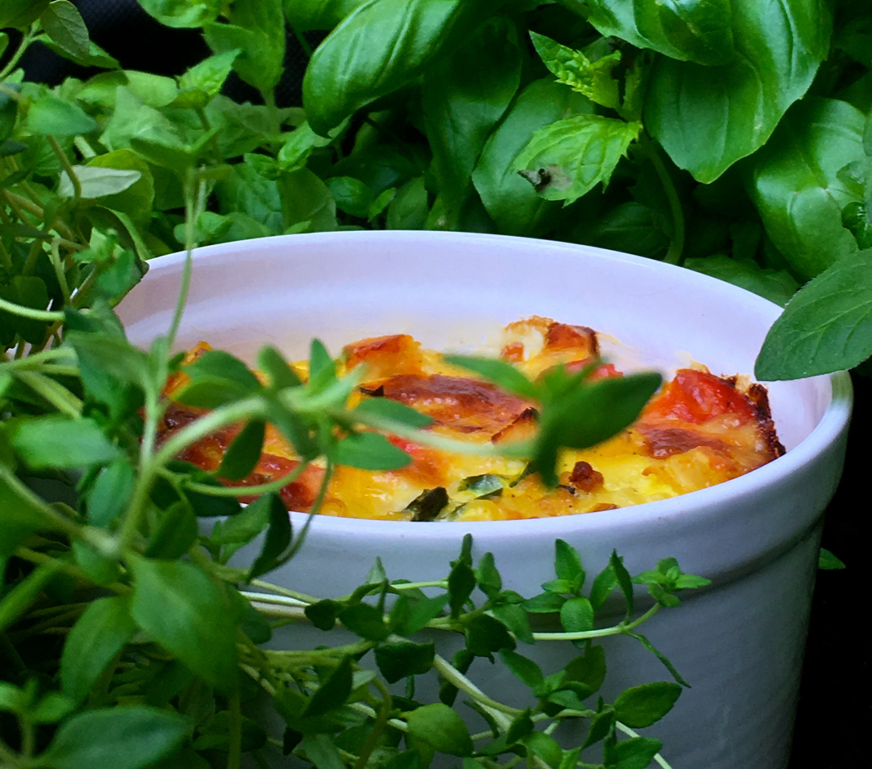 Kuutioi tomaatti. Ripottele leivänmurut, loppu feta ja tomaattikuutiot ruoan pinnalle ja siirrä vuoka uuniin. Paista noin 30 min.