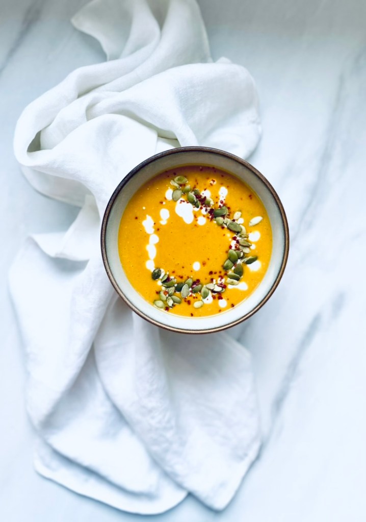Herkullinen, terveellinen ja melko pitkälti itsekseen kattilassa kypsyvä vaihtoehto on seuraava linssi-kurpitsakeitto, johon linssit tuovat mukavasti ruokaisuutta. Kun chilit säätää sopiviksi – halukkaat voivat lisätä annoksiinsa vaikkapa srirachaa – tästä saa helposti koko perheelle mieluisan aterian, jota voi keitellä vaikka tupla-annoksen ja tarvittaessa pakastaa loput sopiviksi annoksiksi. Näin mahdollisesti kiireisinä joulunaluspäivinä voi hyvillä mielin keskittyä joulun valmisteluun ja odotukseen.