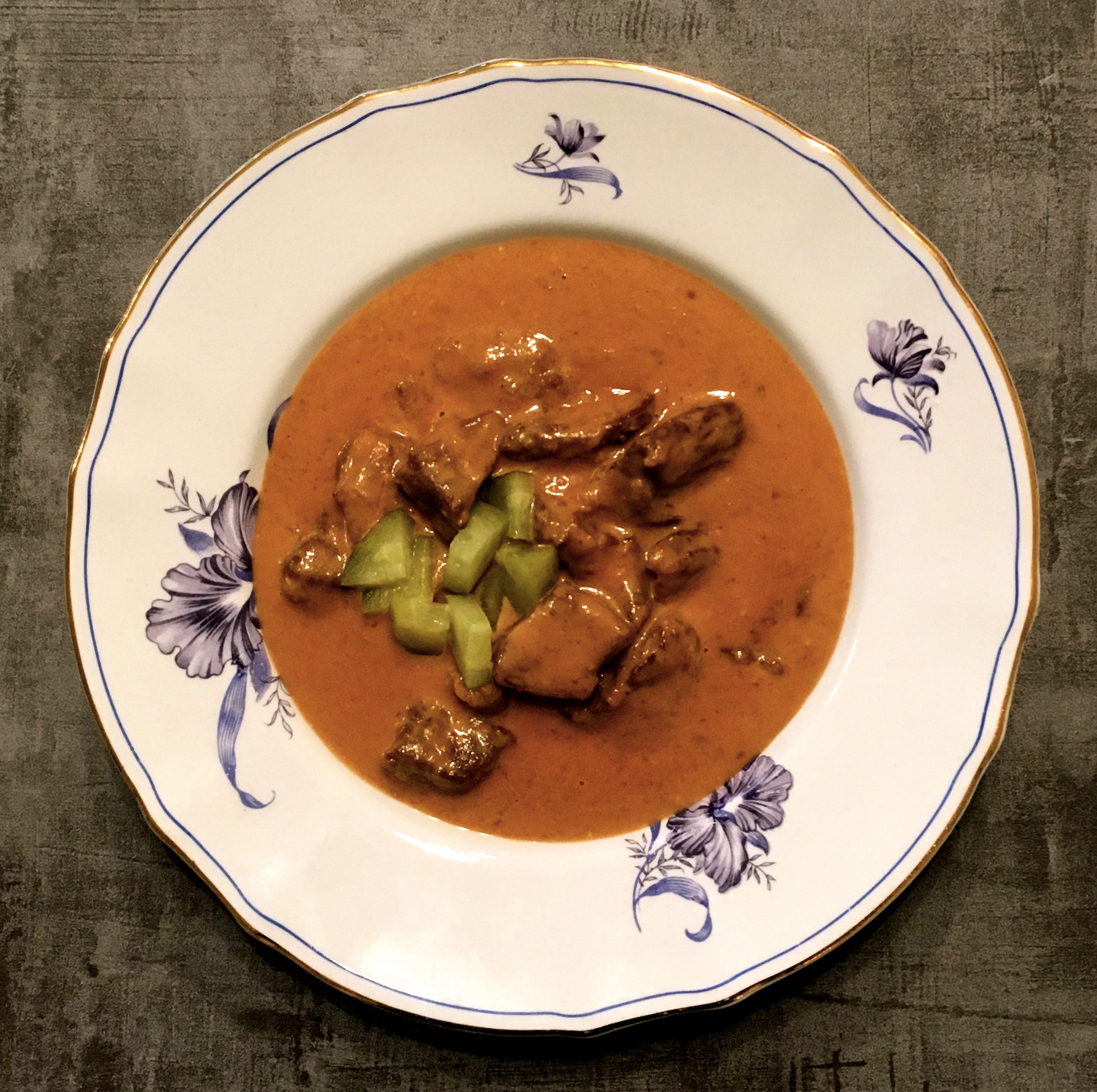 Kuutioi naudanliha ja ruskista palat muutamassa erässä padassa voissa ja/tai öljyssä. Siirrä ruskistetut palat lautaselle odottamaan.