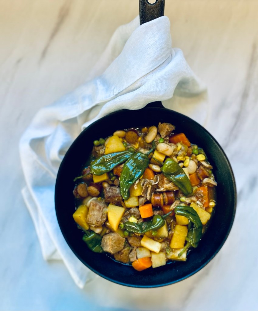 Minun valintani on locro, tuhti pataruoka, jota pidetään yhtenä Argentiinan kansallisruoista. Toukokuun 25. päivänä sitä tarjoillaan monissa perheissä Toukokuun vallankumouksen juhlistamisen kunniaksi. Heti alkuun todettakoon, että minun locroni ei ole autenttista. Oikeanlaista locroa valmistaakseen olisi nimittäin käytettävä tiettyä, ”papa chola” -nimistä perunalajiketta sekä erityisellä tavalla käsiteltyjä maissinjyviä, joita alueen ulkopuolelta ei ole mahdollista löytää. Uskon kuitenkin, että vaikka maissini olivatkin väärin käsiteltyjä ja juurekset reseptistä poikkeavia, sain kyhäelmälläni melko lailla oikean kuvan siitä, mitä locro on. Paljon ainesosia, paljon lihaa ja melko paljon makuakin – vaikka totta puhuakseni pitkälle valmistusvaiheen loppuun saakka olin melko lailla sitä mieltä, että padasta tuskin tulisi kovinkaan kummoista. Monien pataruokien tapaan se ei ollutkaan parhaimmillaan heti uunista tultuaan, vaan vasta seuraavana päivänä, jääkaapissa sopivasti makua keräiltyään. Seuralaiseksi kannattaa ehdottomasti napata kasa avokadoja ja ainakin itse koin padan siinä määrin lihaisaksi, että jonkinlaiset lisäkekasvikset ovat ilman muuta paikallaan. Yksi sopiva vaihtoehto ovat paahdetut ruusukaalit, joiden reseptin löydät locro-reseptin alta.