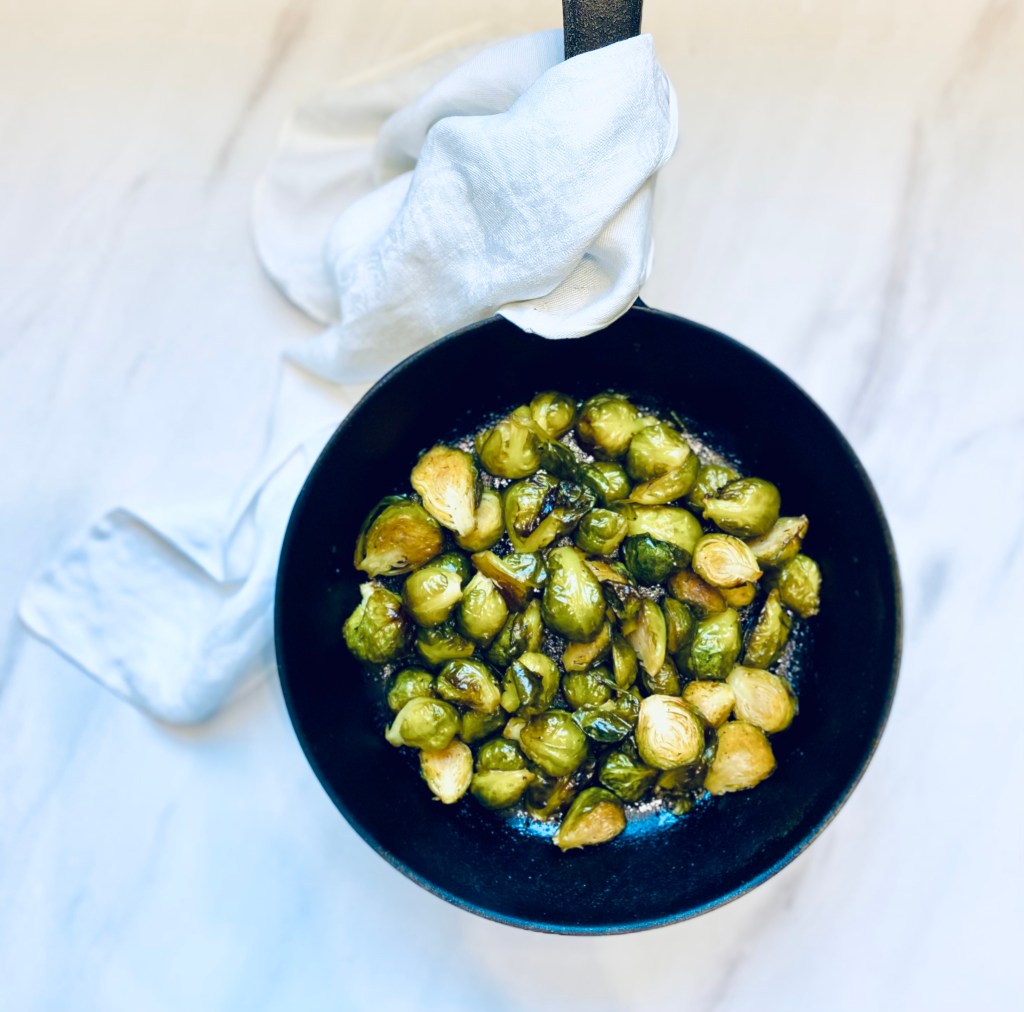 Laita ruusukaalit pieneen uunivuokaan. Valuta öljy, hunaja ja balsamiviinietikka kaaleille. Sekoita. Lisää mausteet ja rosmariininlehdet.