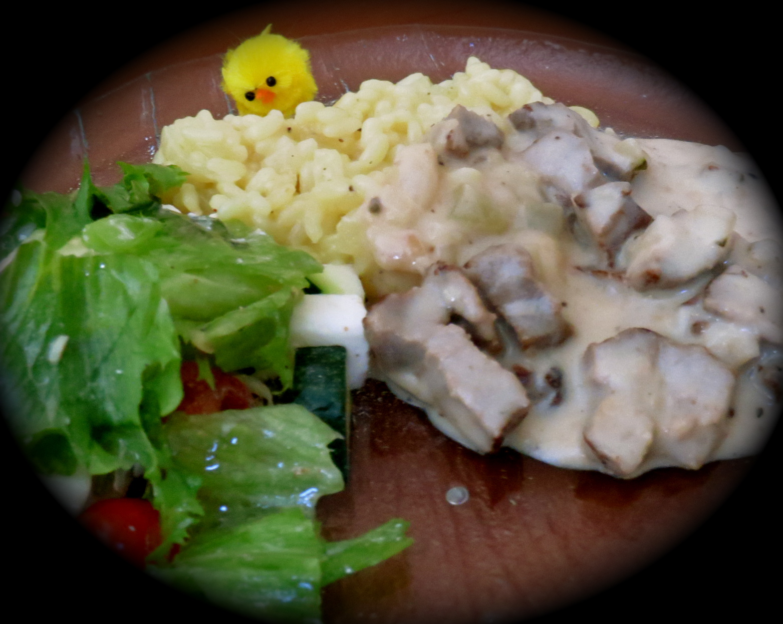 Lammaskastikkeen rinnalle valmistimme keltaista risottoa, joka ei missään mielessä jäänyt ainoastaan lisäkkeen rooliin, vaan maukkaudessaan nousi yksiselitteisesti omaan arvoonsa. Lammas ja risotto pelasivat hienosti yhteen ja paranneltu pääsiäisateria oli koossa.