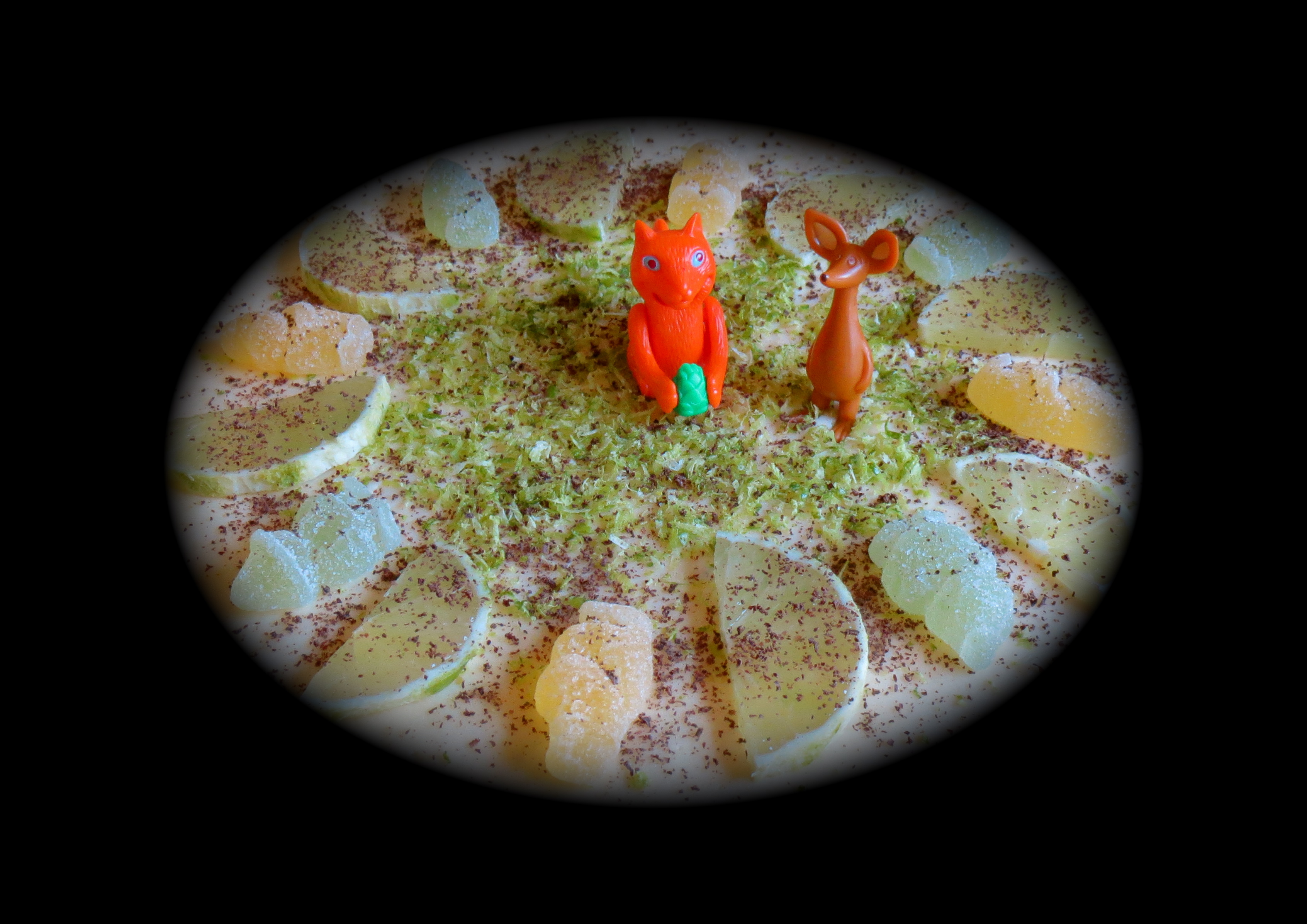 Pese lime kuumalla vedellä. Kuivaa. Raasta ohut pintakuori. Lisää 1 tl kuorta täytteeseen. Säästä loput koristeeksi. Purista mehu. Lisää sitä 0,5 rkl täytteeseen. Lisää täytteeseen kermavaahto.