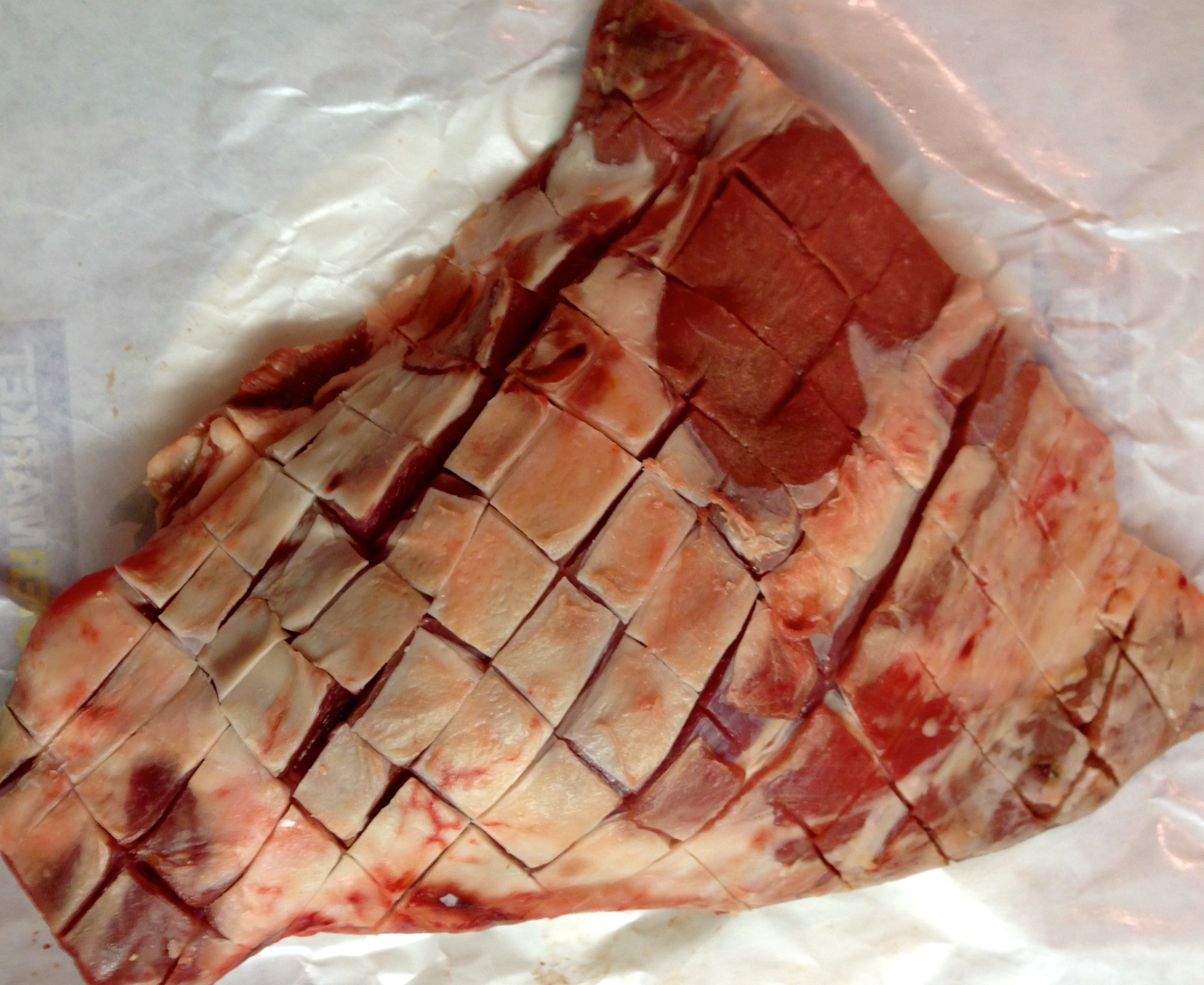 Aseta lampaan lapa leikkuulaudalle luupuoli alaspäin. Jos lihakauppias ei ole viiltänyt sen pintaa, tee lampaan rasvakerrokseen ja lihaan ristiviillot terävällä veitsellä.